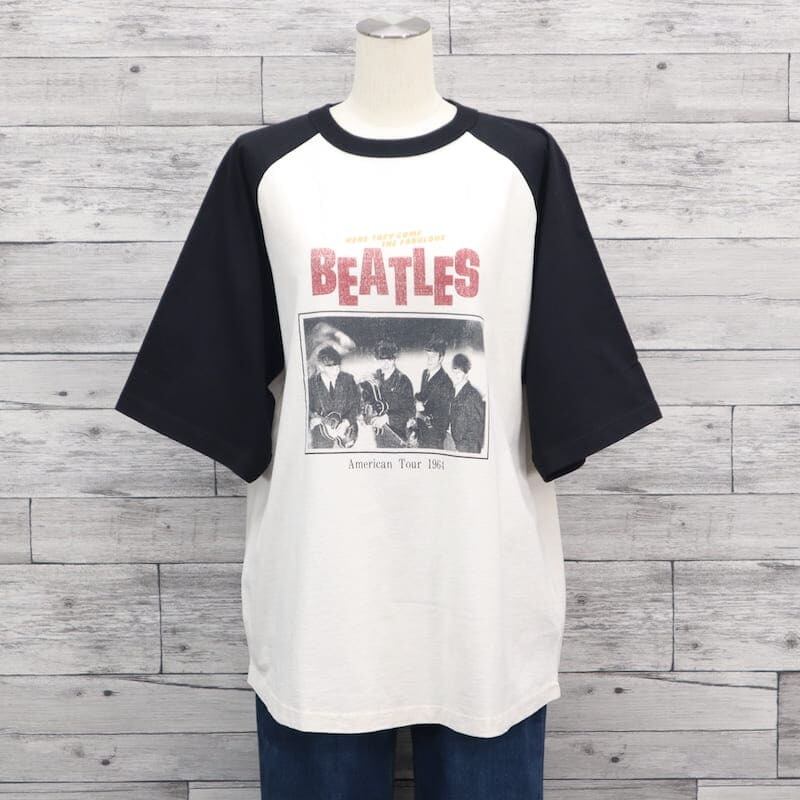 【送料無料】メンズ The Beatles ビートルズ 半袖 Tシャツ 半袖Tシャツ ティーシャツ プリント ロゴ ツアーTシャツ バンドTシャツ ロック ラグラン ワイドシルエット ユニセックス レディース オフホワイト