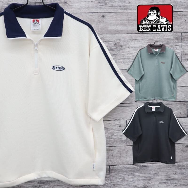 【送料無料】メンズ ベンデイビス ベン デイビス BENDAVIS BEN DAVIS 半袖 ニット ハーフジップ トップス ポロ ロゴ 刺繍 ユニセックス レディース アイボリー オフホワイト ミント グリーン 黒 ブラック | DEF STORE