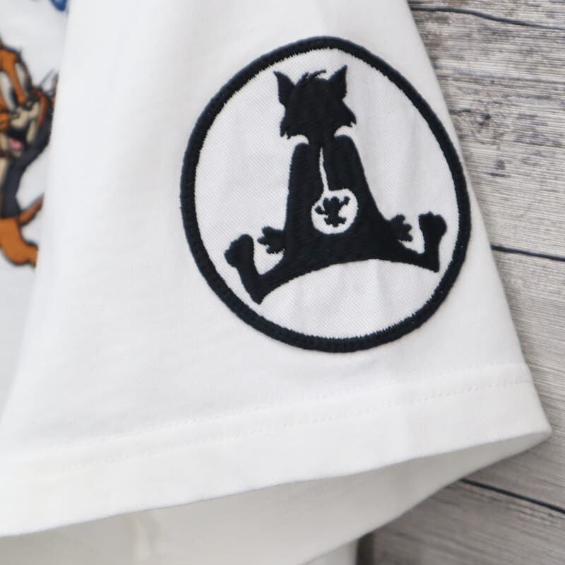 フロントは逃げるジェリーを、バックは追うトムを刺繍でデザイン。