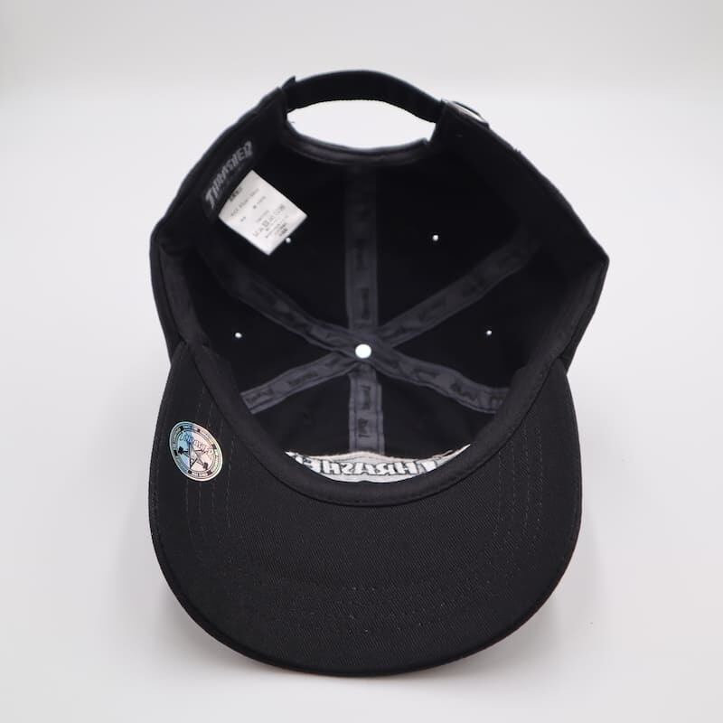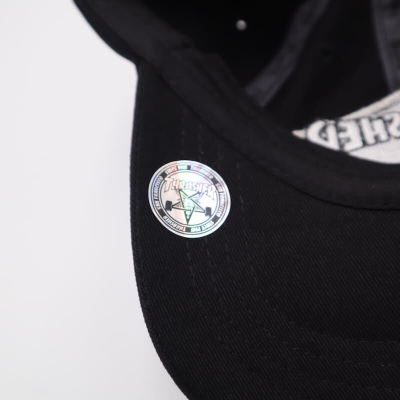 THRASHER スラッシャー キャップ CAP 帽子 カーブドバイザー 刺繍 ロゴ ステッカー スケボー スケートボード スケーター ストリート カジュアル シンプル ワンポイント 綿 コットン ユニセックス メンズ レディース 黒 ブラック | DEF STORE