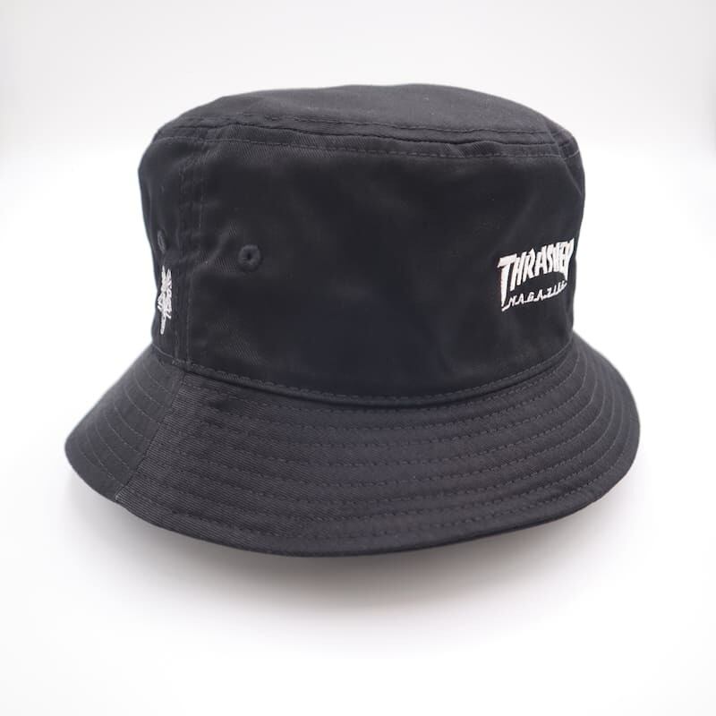 THRASHER スラッシャー バケットハット バケハ HAT 帽子 刺繍 ロゴ スケボー スケートボード スケーター ストリート ワンポイント ユニセックス メンズ レディース 黒 ブラック | DEF STORE