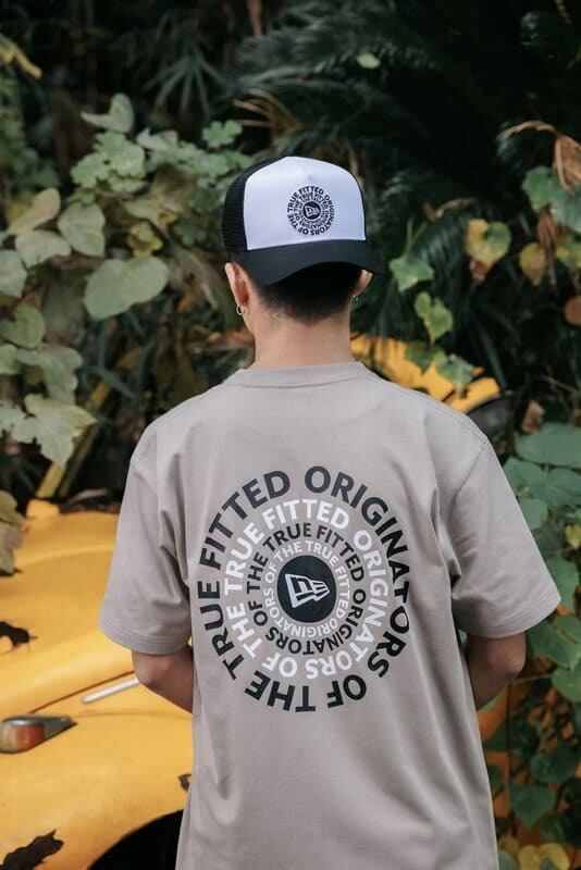 かつて使用していたタグライン、Originators of the True Fittedをフィーチャーした半袖Tシャツ。