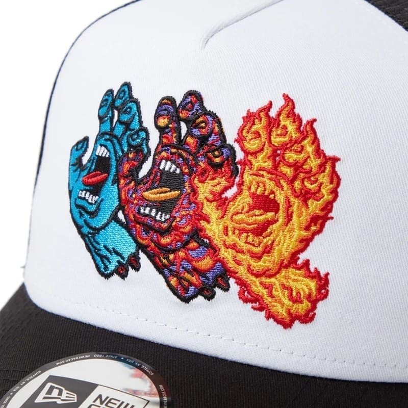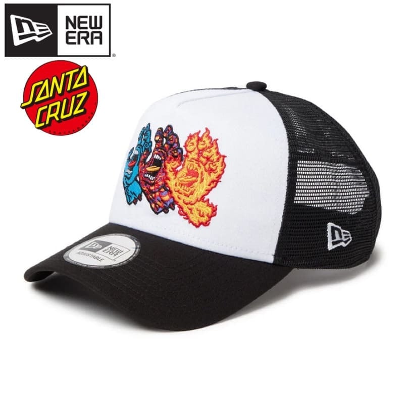 NEWERA ニューエラ 正規品 SANTA CRUZ サンタクルーズ コラボ キャップ メッシュ メッシュキャップ 帽子 9FORTY 刺繍 手 ハンド ユニセックス メンズ レディース バイカラー ツートン 白 ホワイト 黒 ブラック 14384269
