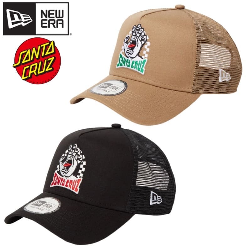 NEWERA ニューエラ 正規品 SANTA CRUZ サンタクルーズ コラボ キャップ メッシュ メッシュキャップ 帽子 9FORTY 刺繍 手 ハンド ユニセックス メンズ レディース カーキ ベージュ 黒 ブラック 14457352 14384268