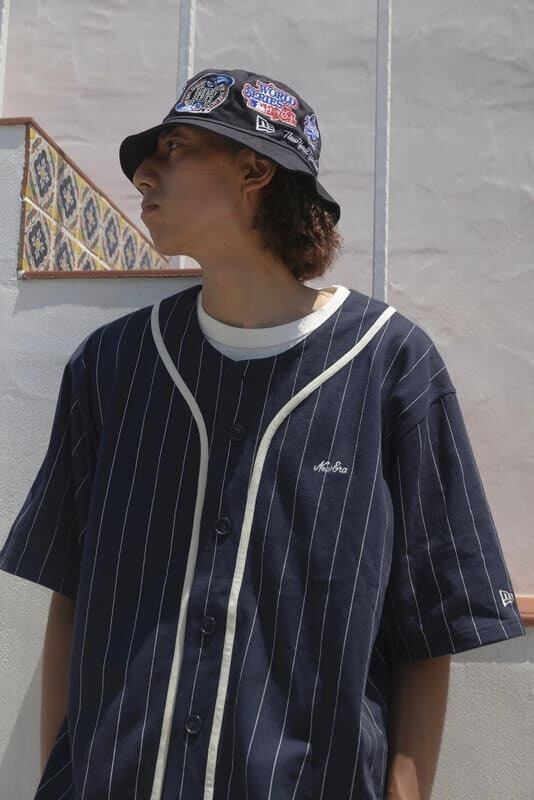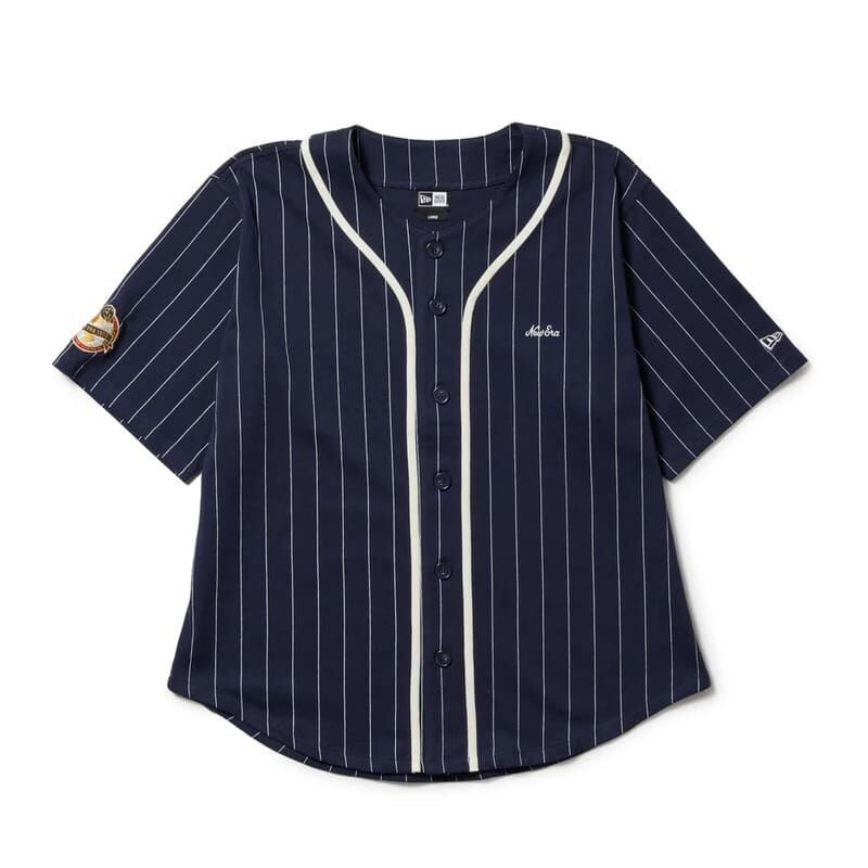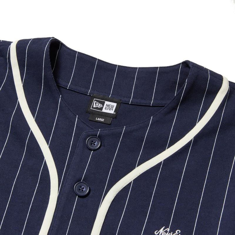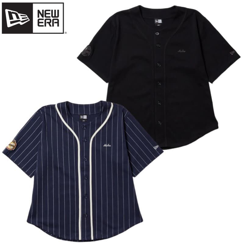 NEWERA ニューエラ 正規品 半袖 ベースボールシャツ シャツ 半袖シャツ アウター 羽織り スポーツ 野球 オーバーサイズ ユニセックス メンズ レディース 紺 ネイビー ストライプ 黒 ブラック 14410205 14410206