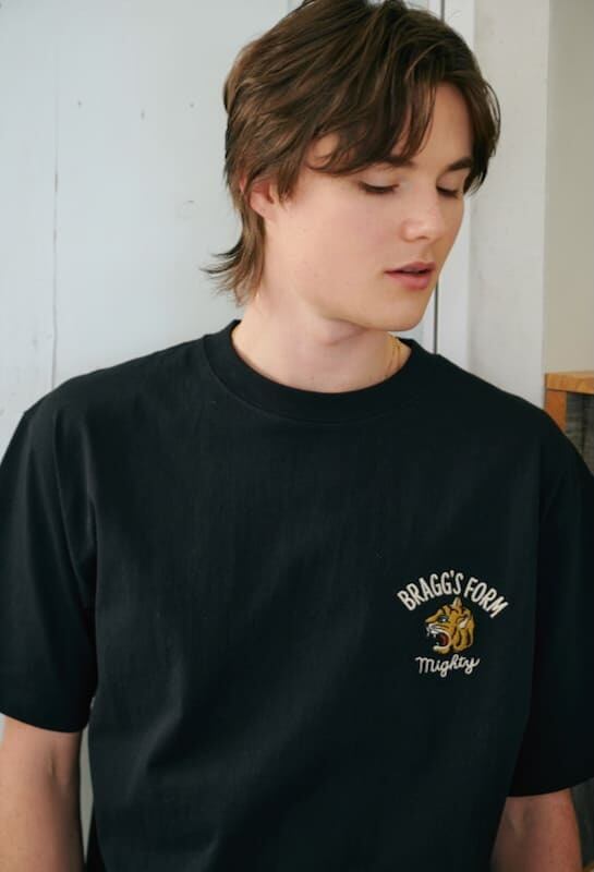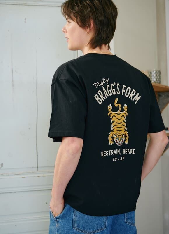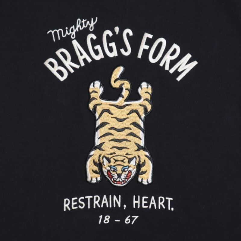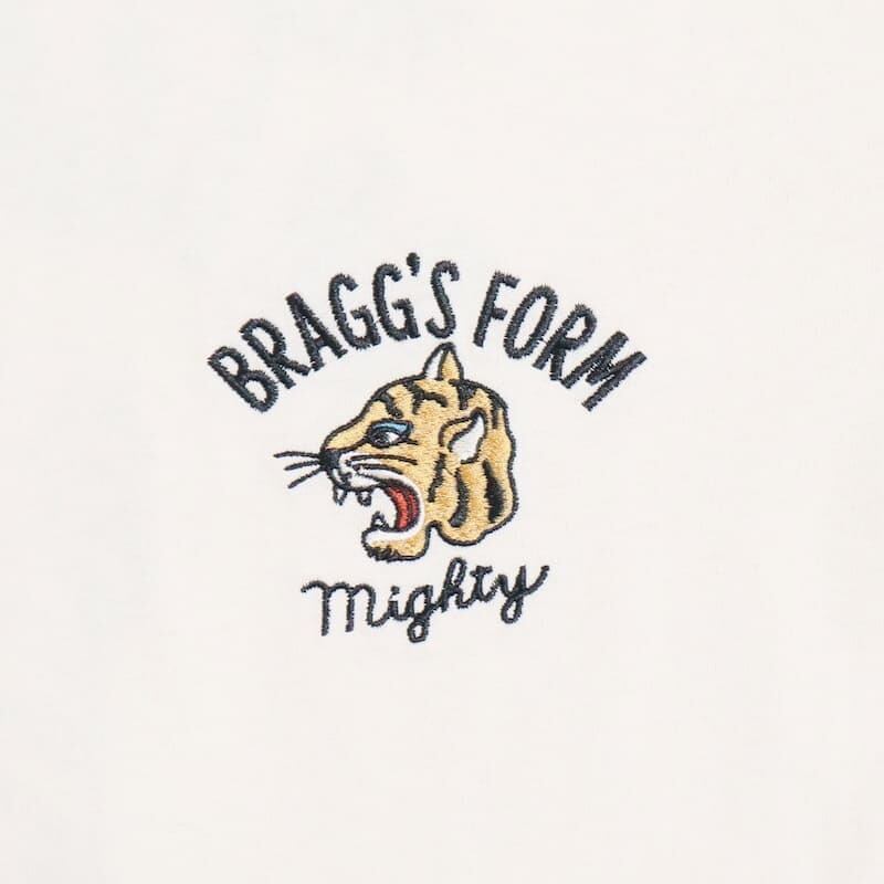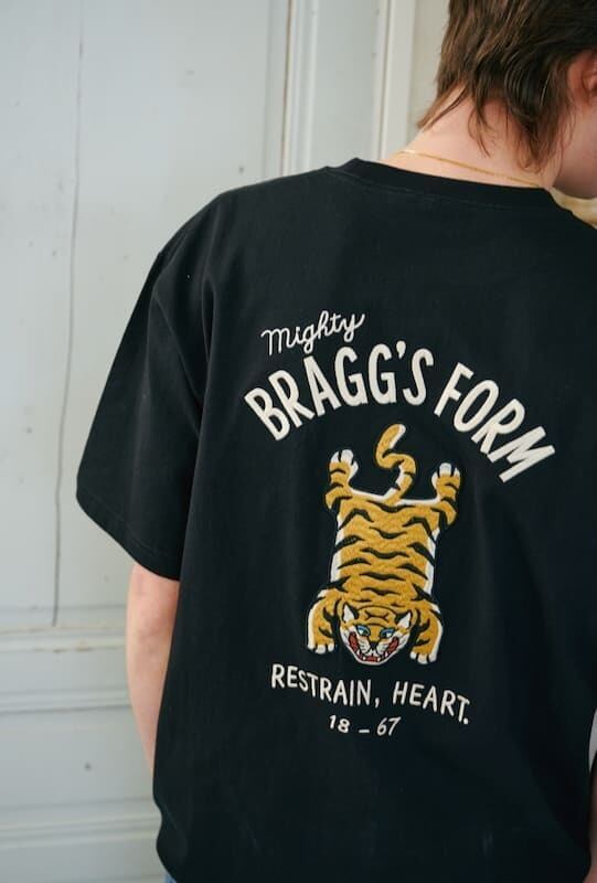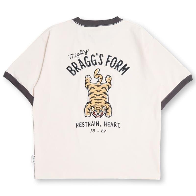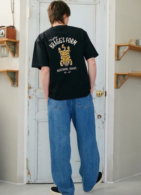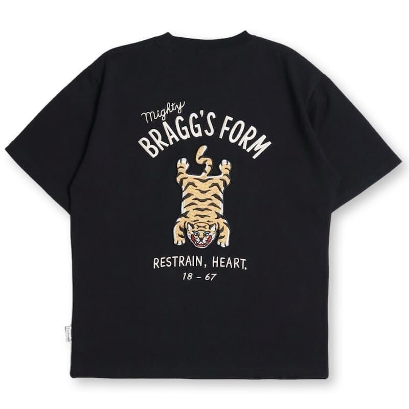 バックにチベタンタイガーラグの柄が大胆に入った刺繍Tシャツ。