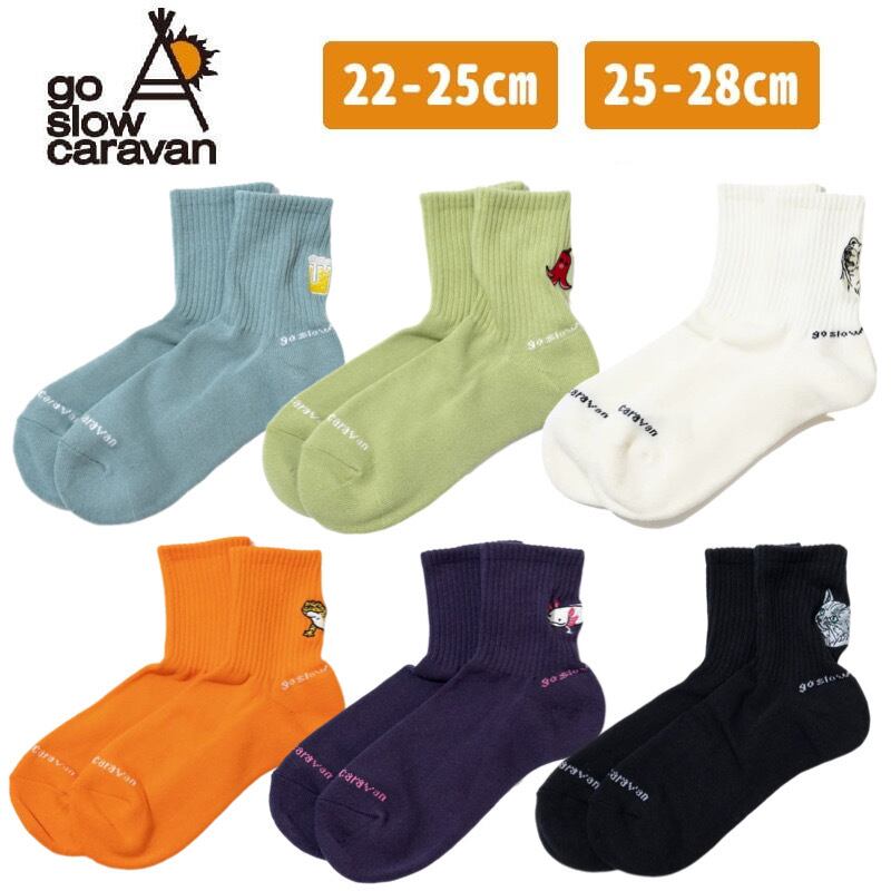 【送料込】ゴースローキャラバン go slow caravan ソックス 靴下 刺繍 動物 アニマル ユニセックス メンズ レディース クマ ネコ レオパ タコさんウインナー ビール ウーパールーパー ホワイト ブラック ブルー グリーン オレンジ バイオレット | DEF STORE