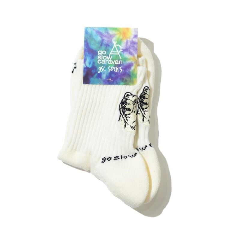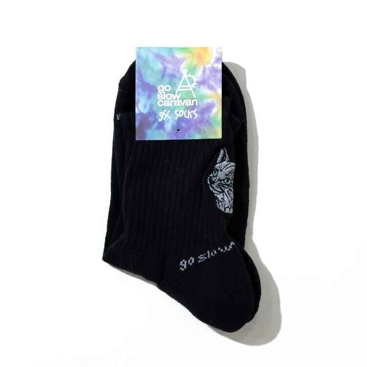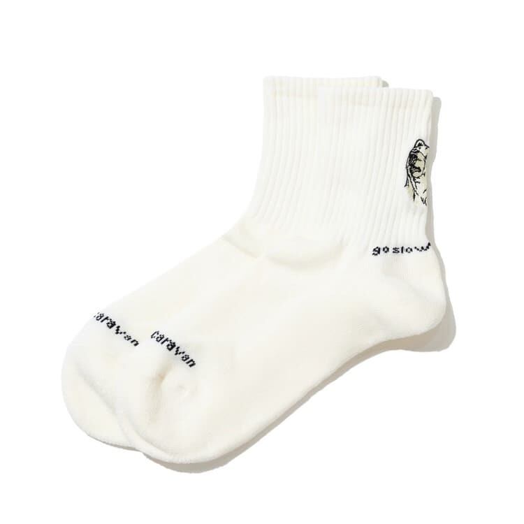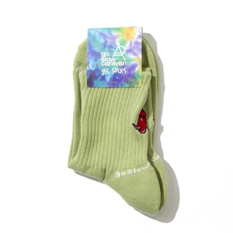 アウトドアブランド go slow caravan(ゴースローキャラバン)のオリジナル柄ソックス。