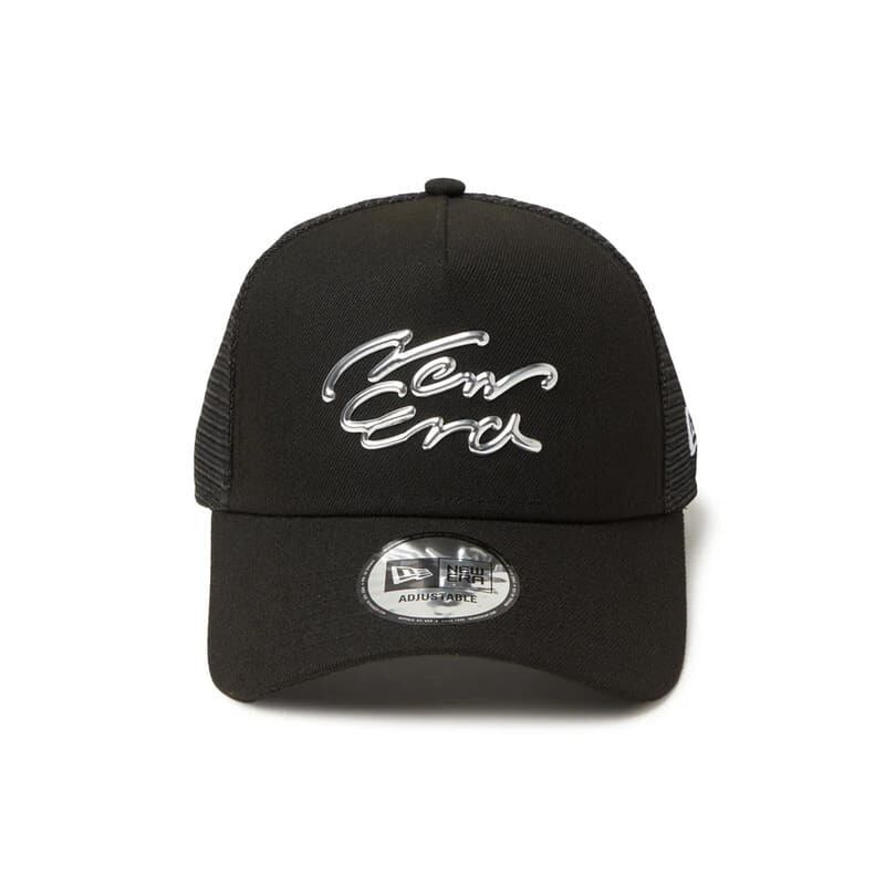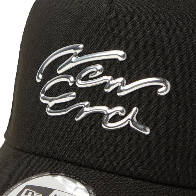 NEWERA ニューエラ 正規品 キャップ メッシュ メッシュキャップ 帽子 9FORTY TPU ロゴ メタル メタリック 立体 刺繍 サイズ調整 ユニセックス メンズ レディース 黒 ブラック 14388595
