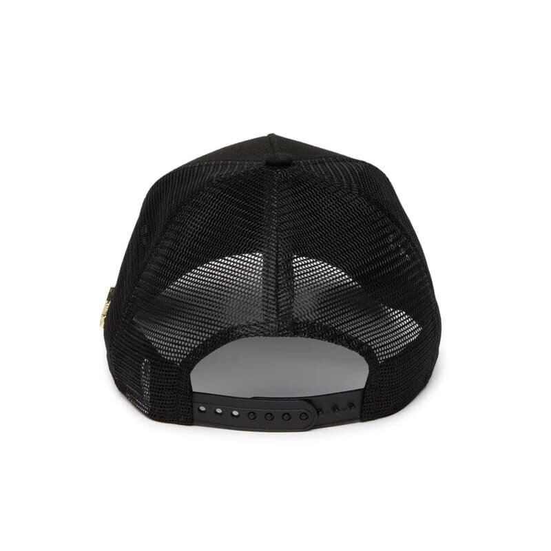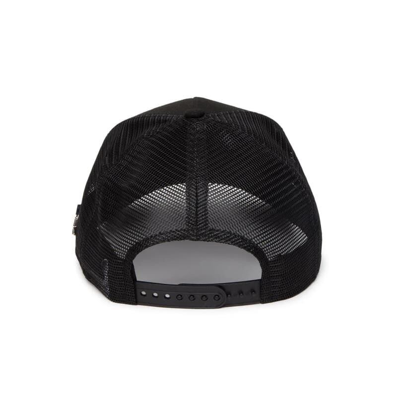 ブランディングを刻印したメタルプレートをデザインしたメッシュキャップ。