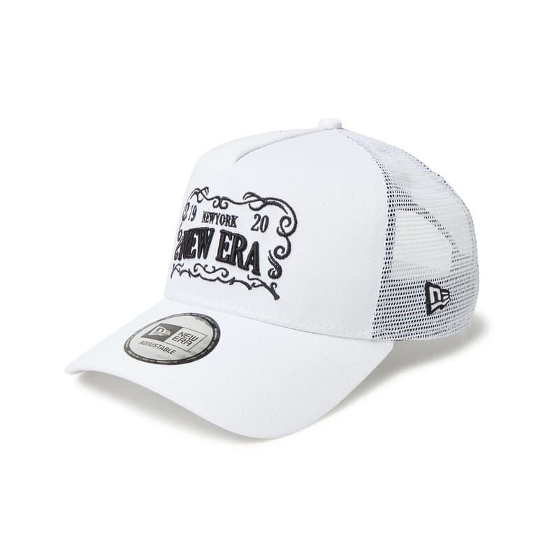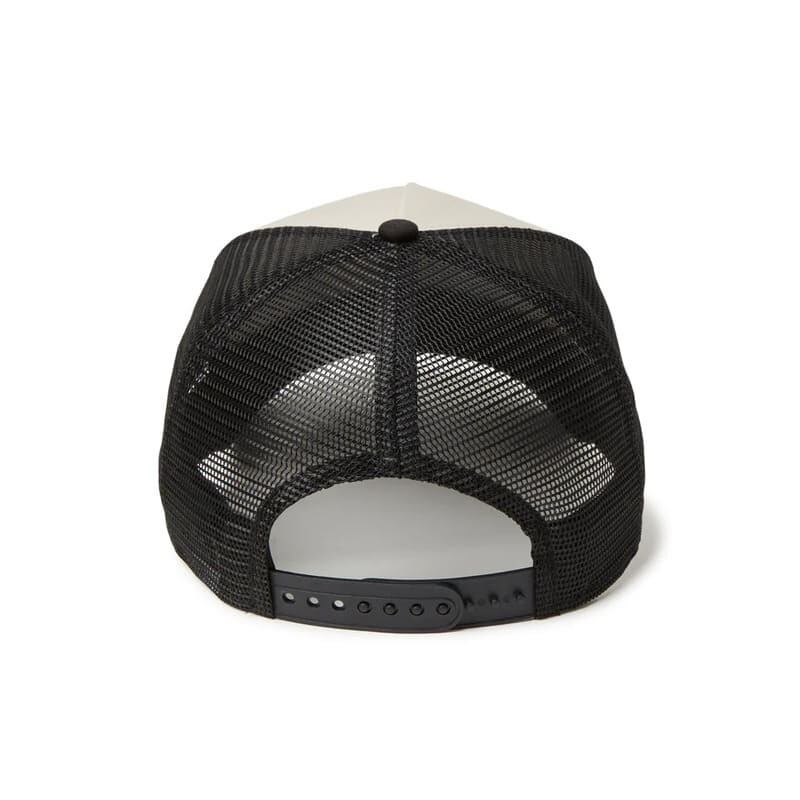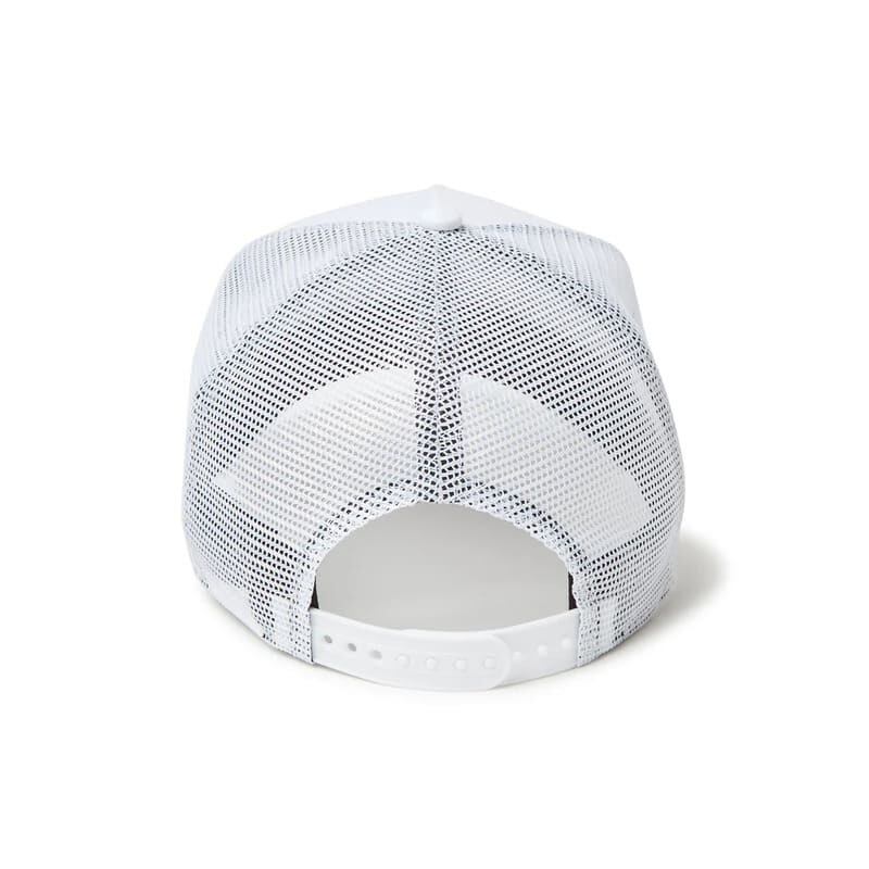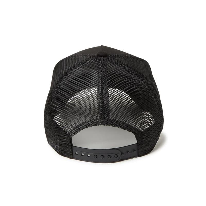 フレームロゴをフロントに刺繍したメッシュキャップ。
