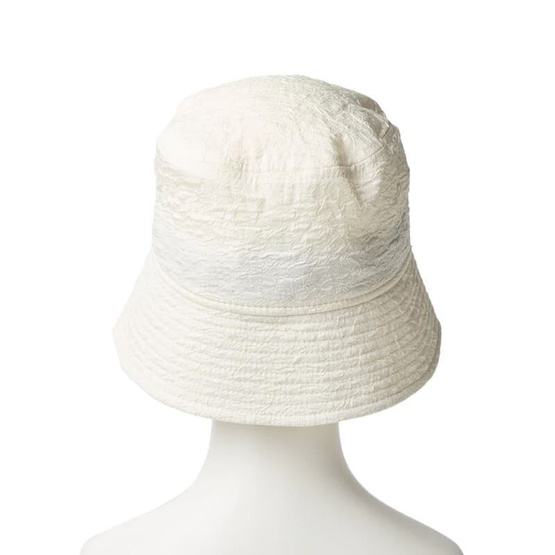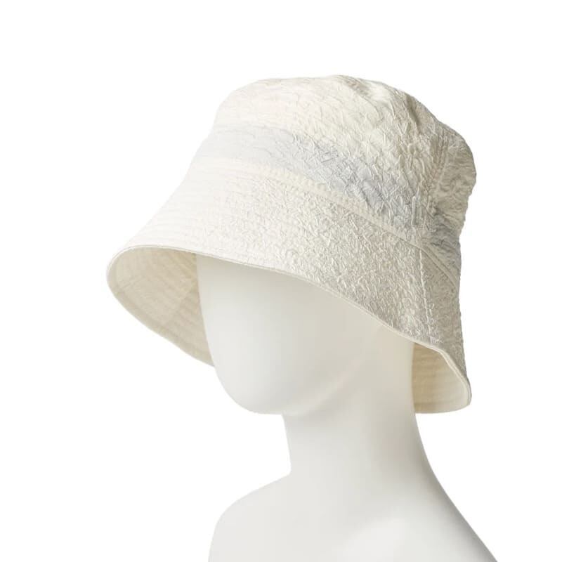 膨れジャカード生地を使用し、程よい弾力性と立体感を付加したバケットハット。