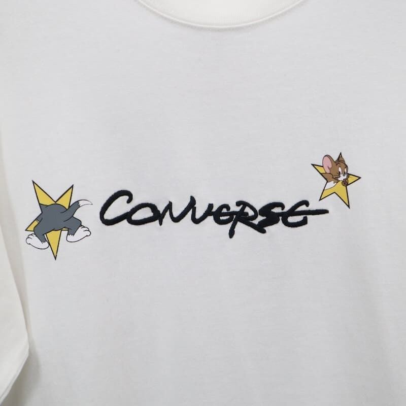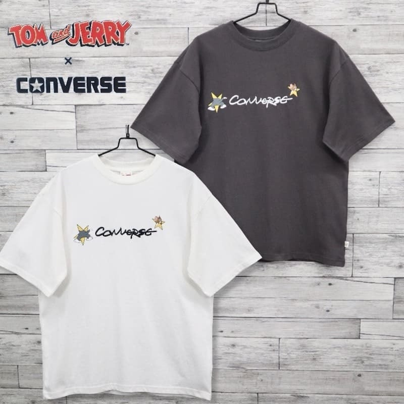 人気キャラクター「トムとジェリー」とオールスター、ジャックパーセルなどのスニーカーで知られる「CONVERSE」がコラボした半袖Tシャツ。