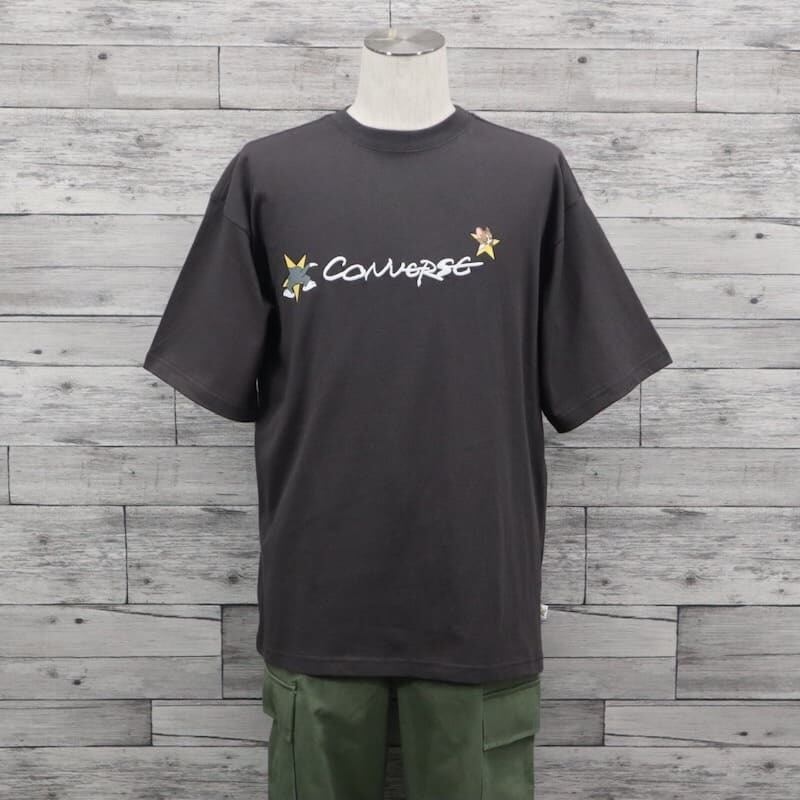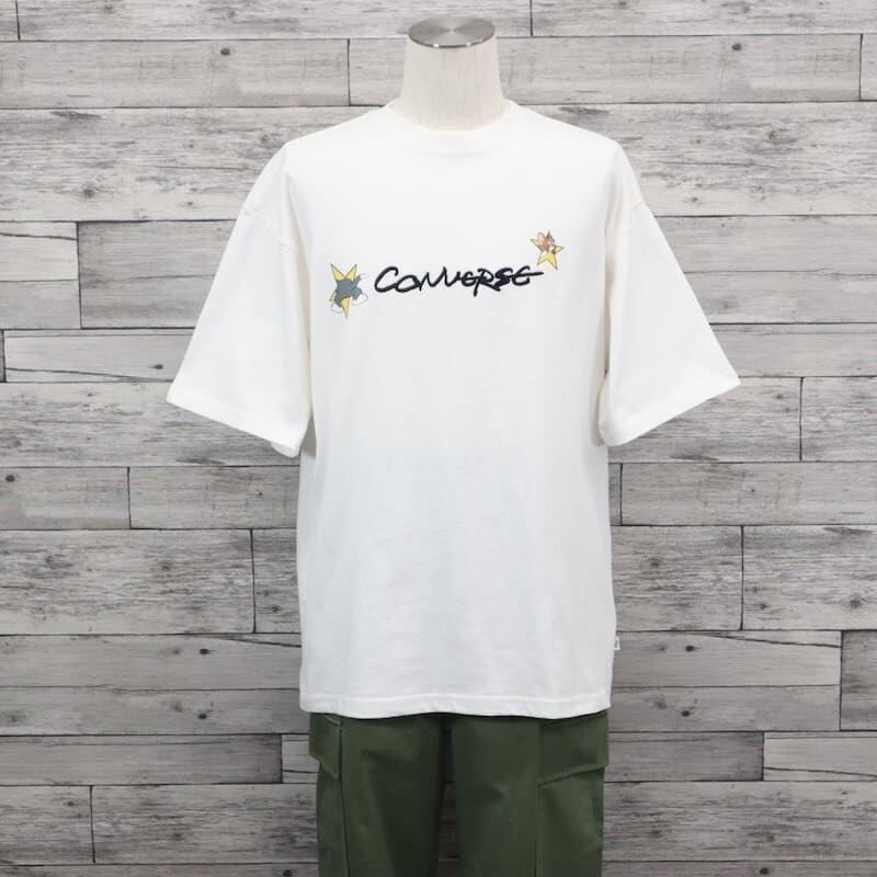 【送料無料】メンズ トムとジェリー TOM&JERRY トムジェリ コンバース CONVERSE コラボ 半袖 Tシャツ 半袖Tシャツ ティーシャツ プリント 刺繍 ロゴ オーバーサイズ ビッグシルエット ユニセックス レディース 白 ホワイト スミクロ インクブラック | DEF STORE
