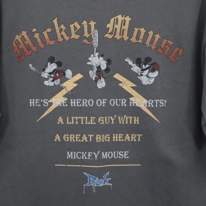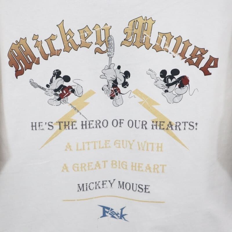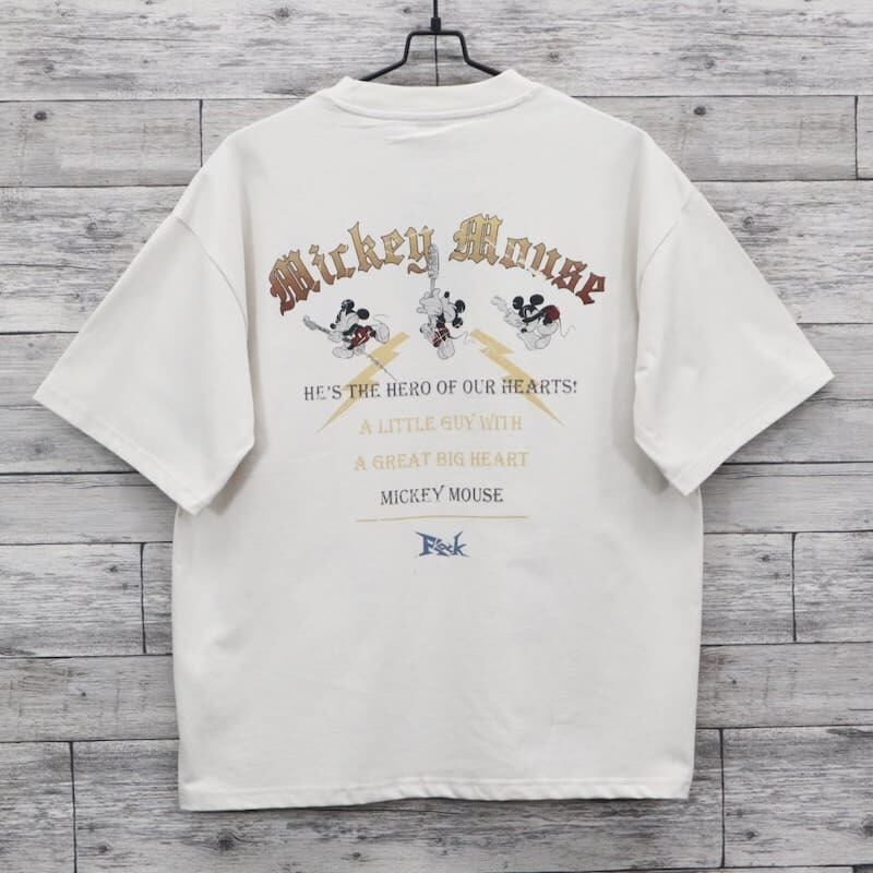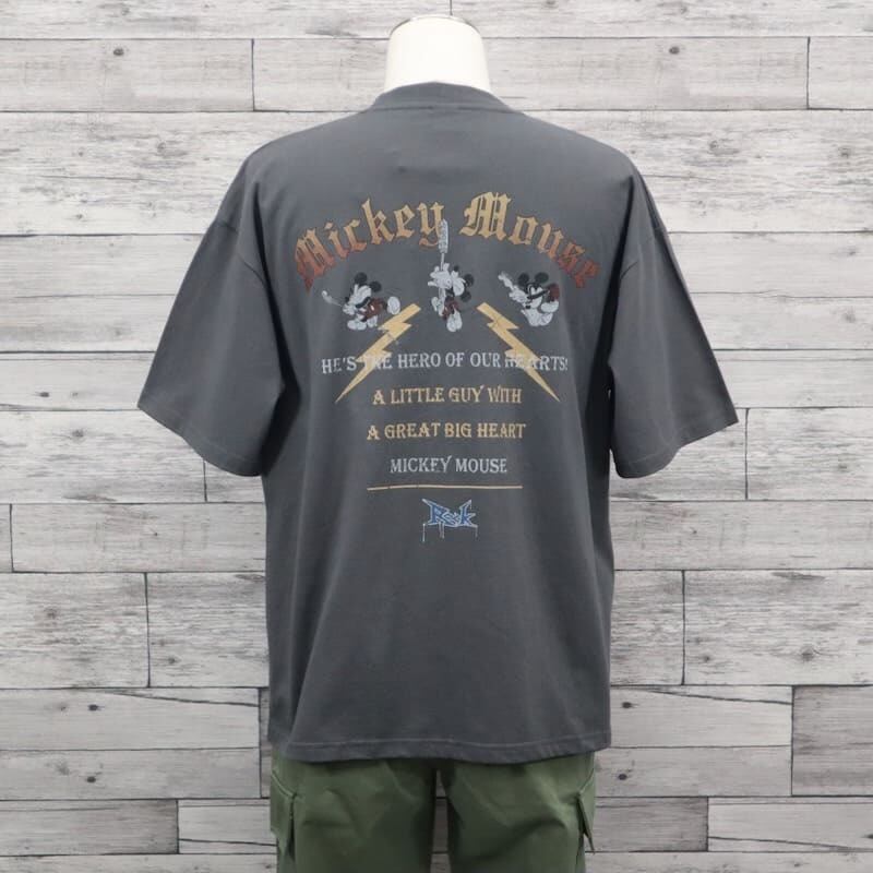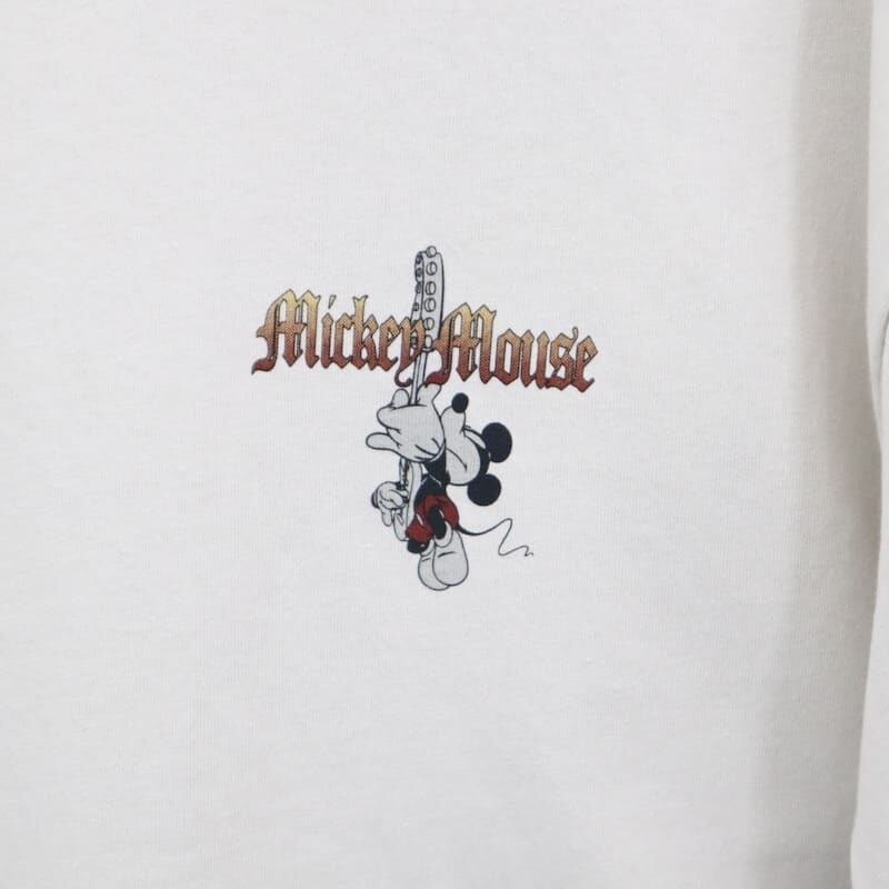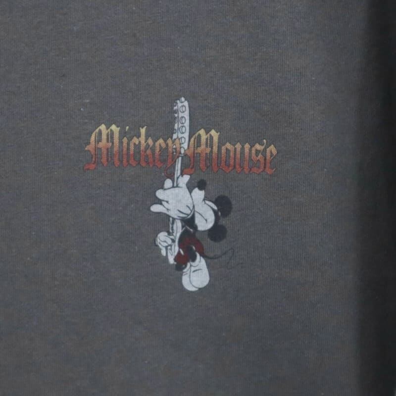 トレンドのロックT風のデザインで、ギターを演奏するミッキーがプリントされています。