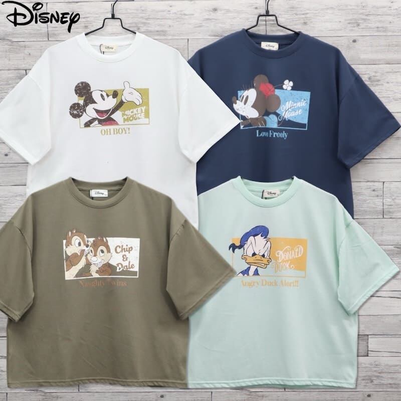 ディズニーの人気キャラクターをプリントした半袖Tシャツ。