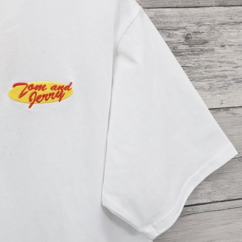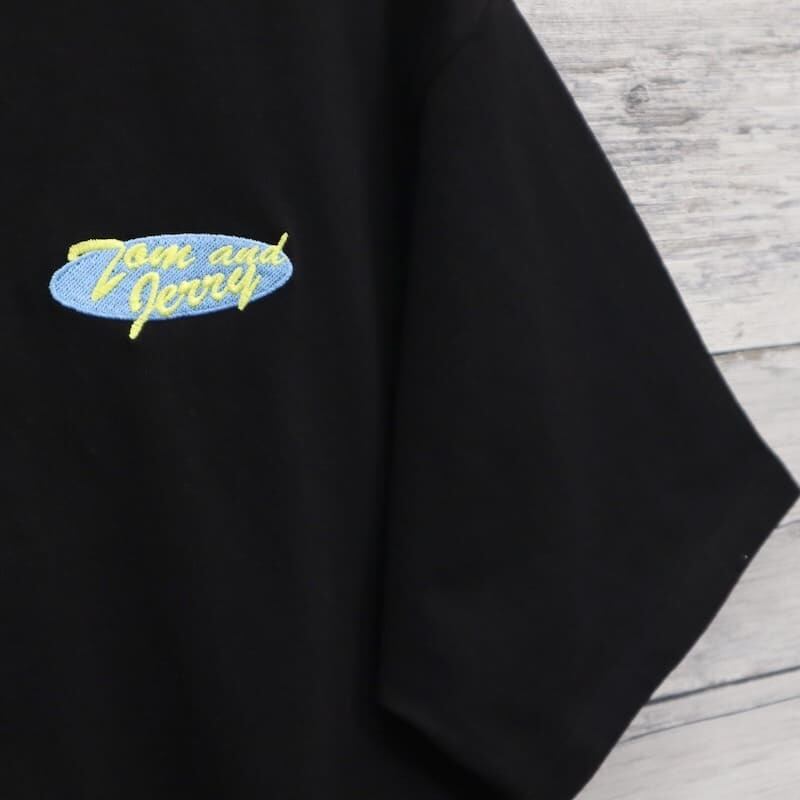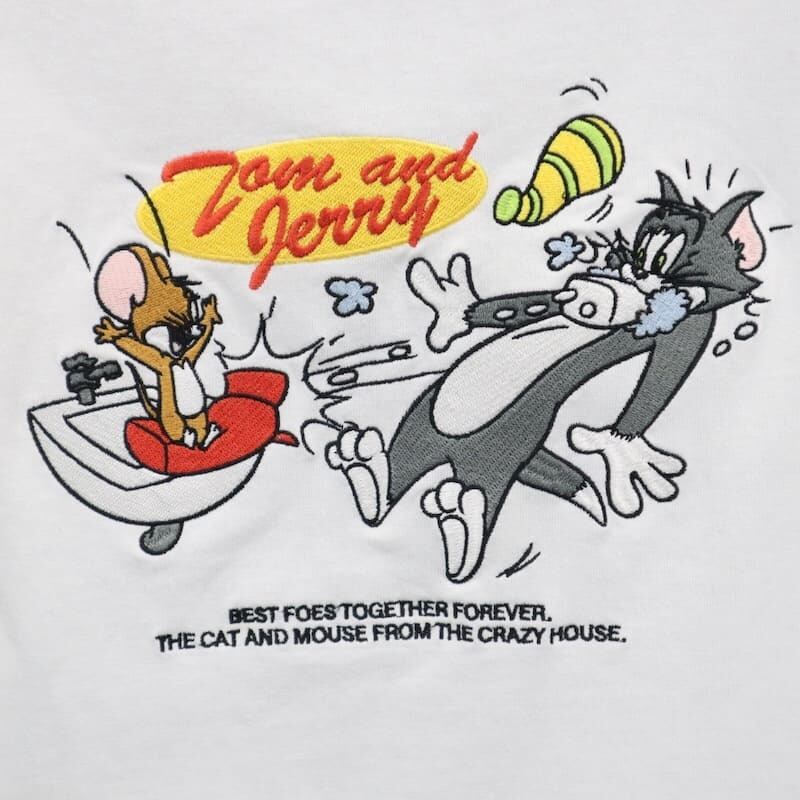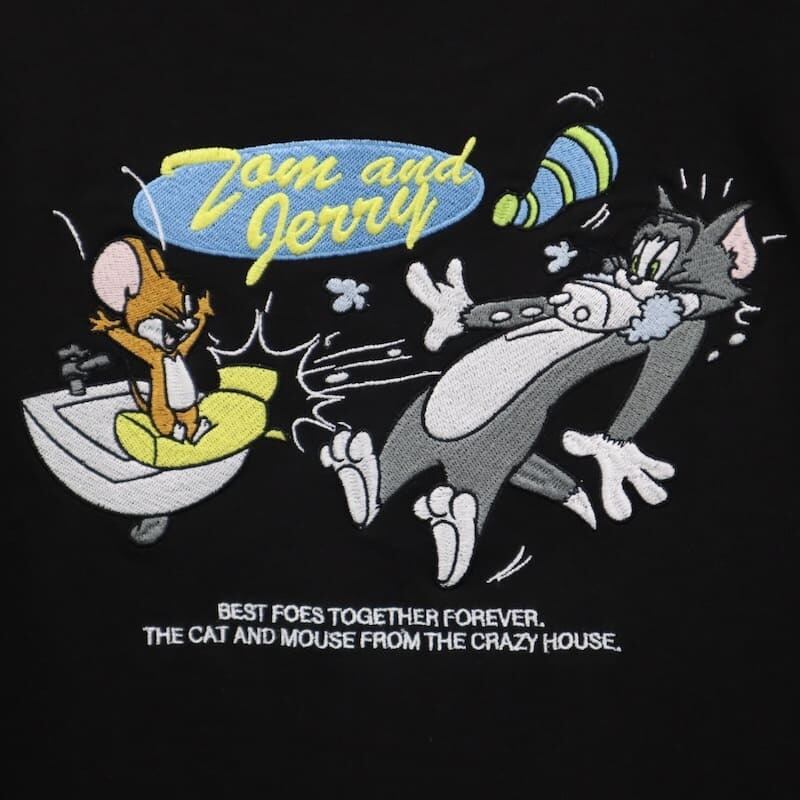 トムとジェリーの姿をバックに刺繍したデザイン。
