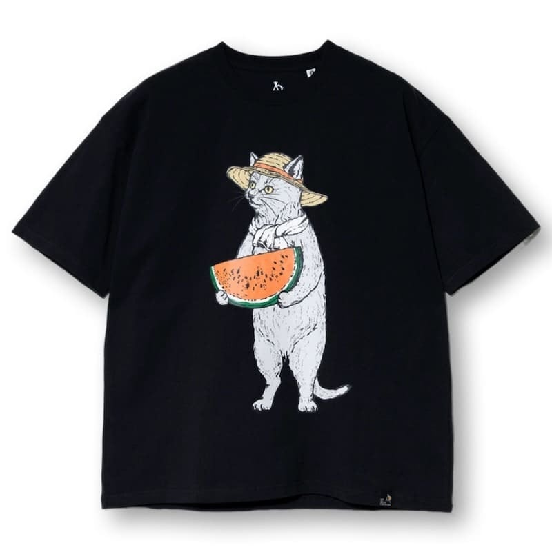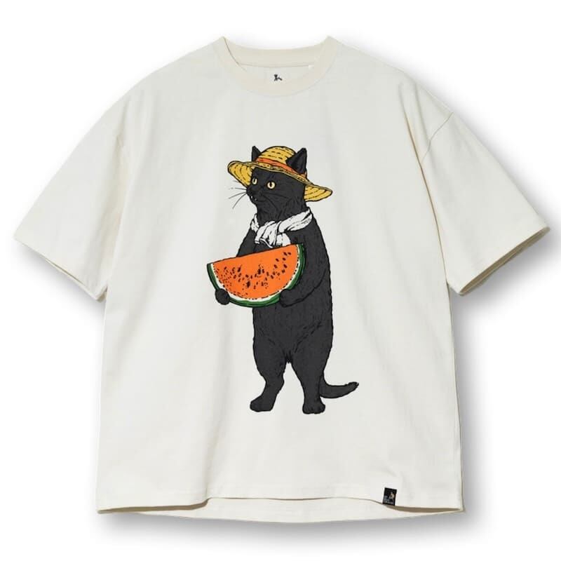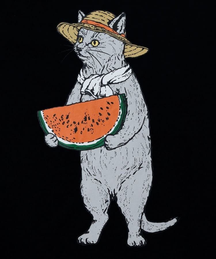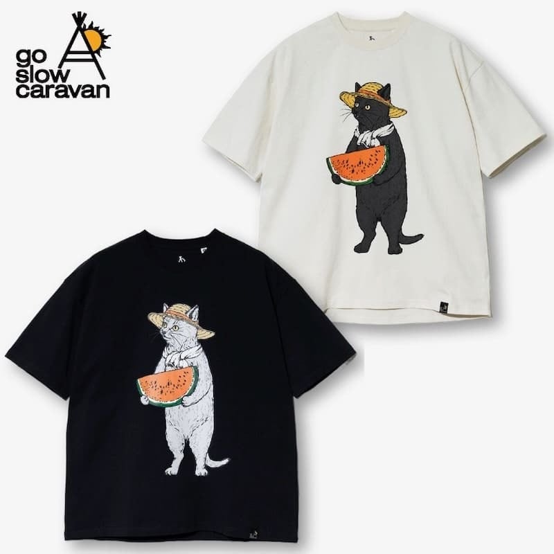 【送料無料】メンズ ゴースローキャラバン 半袖 Tシャツ 半袖Tシャツ ティーシャツ go slow caravan スイカ すいか 猫 ねこ ネコ 黒猫 グレー猫 麦わら帽子 プリント ユニセックス レディース アイボリー 黒 ブラック | DEF STORE