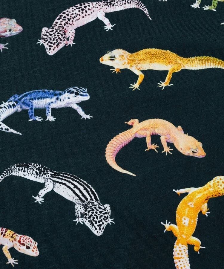 ほぼ実寸大のレオパたち。実際には存在しない想像上のカラーリングのレオパもいます。