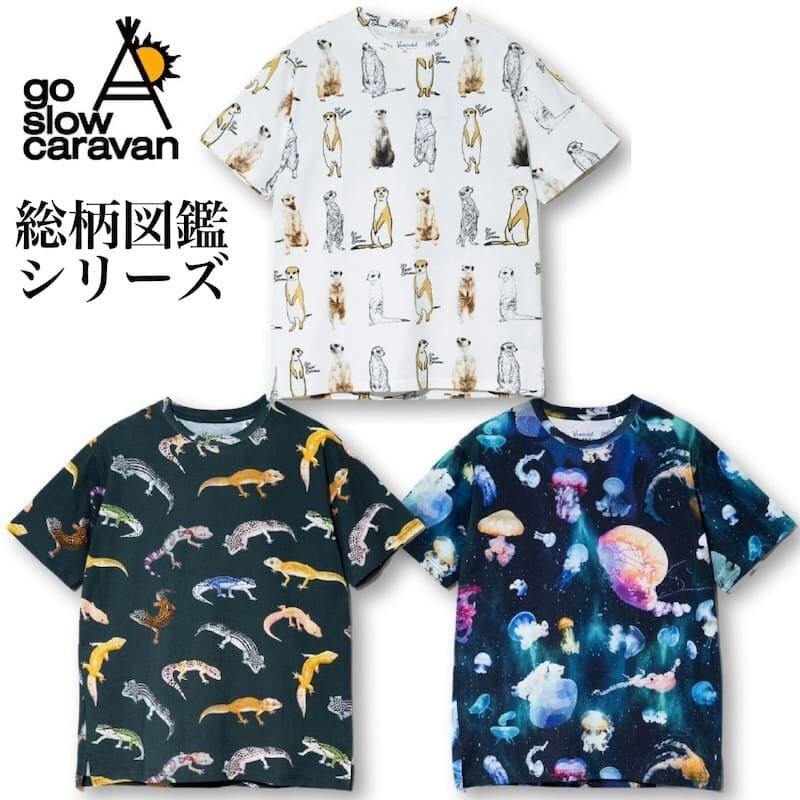 【送料無料】メンズ ゴースローキャラバン 半袖 Tシャツ 半袖Tシャツ ティーシャツ go slow caravan 総柄 総柄図鑑 生き物図鑑 総プリント ミーアキャット レオパードゲッコー ヒョウモントカゲモドキ クラゲ 海月 ユニセックス レディース コットン ホワイト グリーン ネイビー | DEF STORE