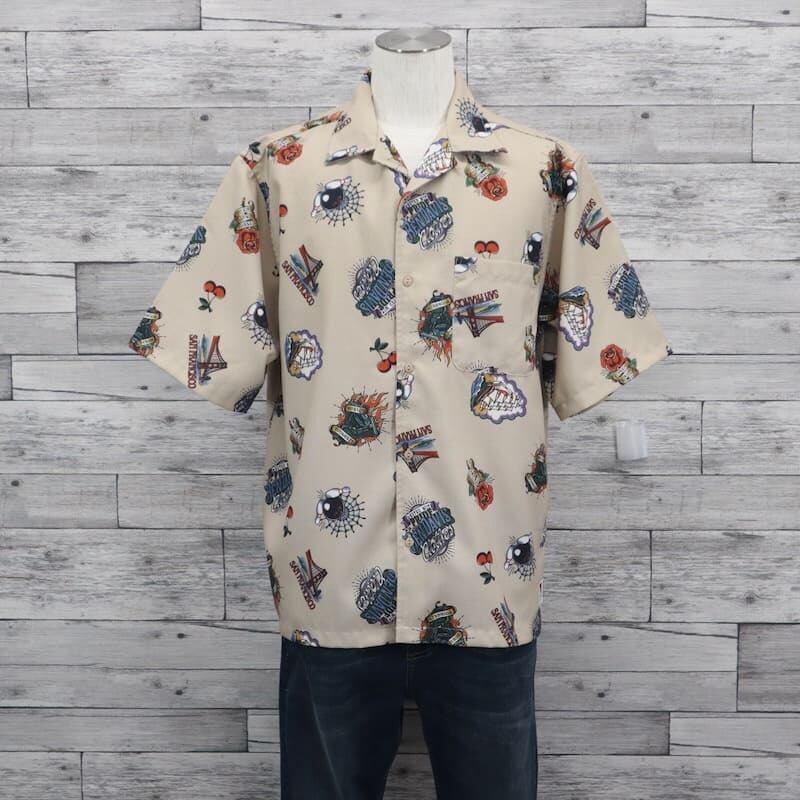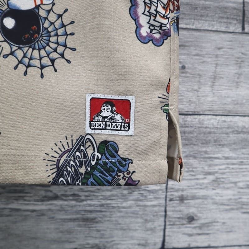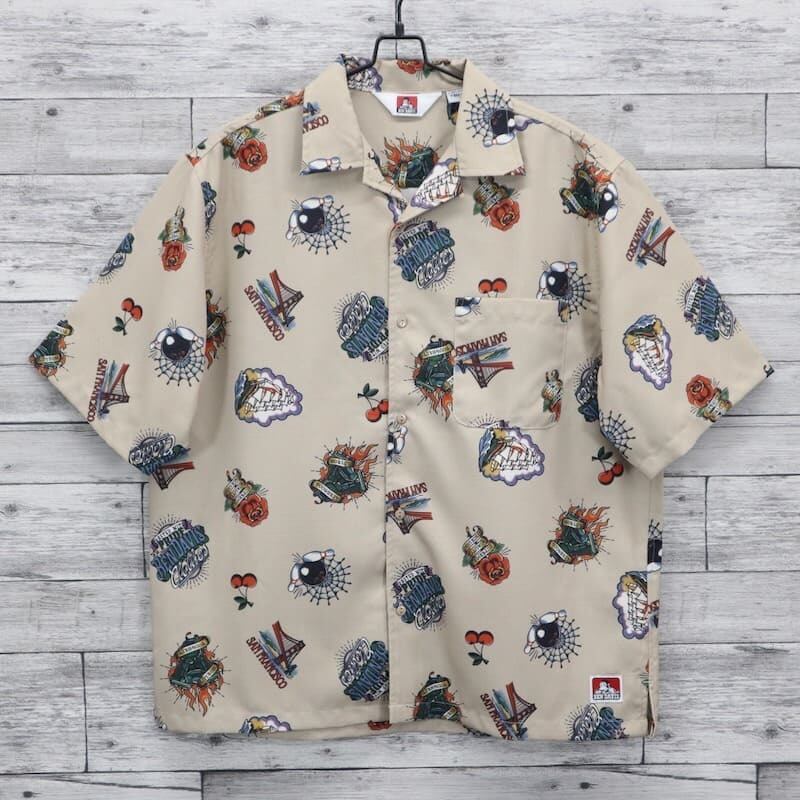 【送料無料】メンズ BEN DAVIS BENDAVIS ベン デイビス ベンデイビス 半袖 プリント シャツ 半袖シャツ アロハシャツ プリントシャツ 総柄シャツ 開襟 タトゥー柄 エドハーディー風 ED HARDY風 ユニセックス レディース ベージュ 黒 ブラック | DEF STORE