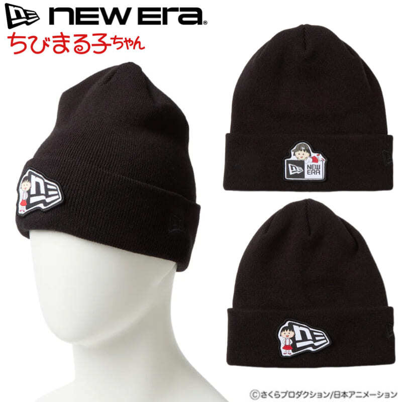NEWERA ニューエラ 正規品 ニットキャップ ニット帽 ちびまる子ちゃん コラボ CAP 帽子 ビーニー ワッペン キャラクター グッズ ユニセックス メンズ レディース 黒 ブラック ボックスロゴ フラッグロゴ 14693309 14693310 | DEF STORE