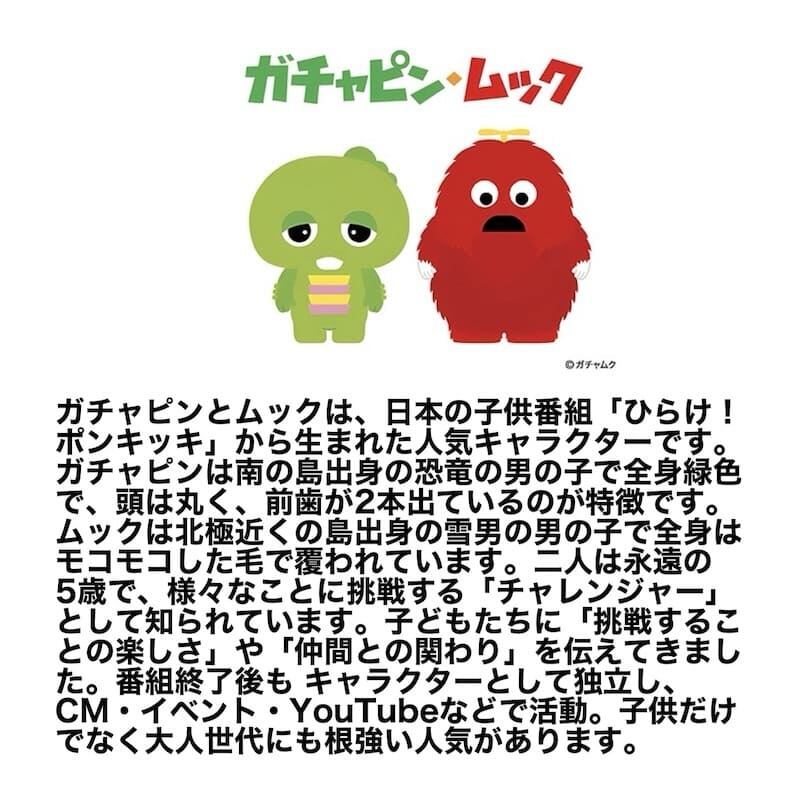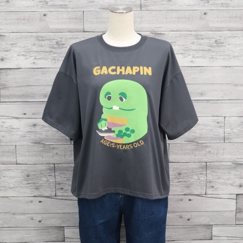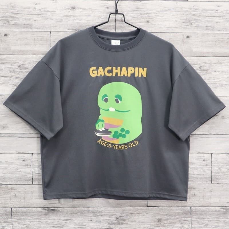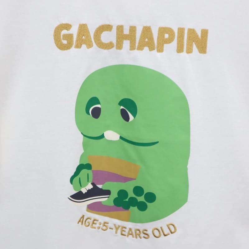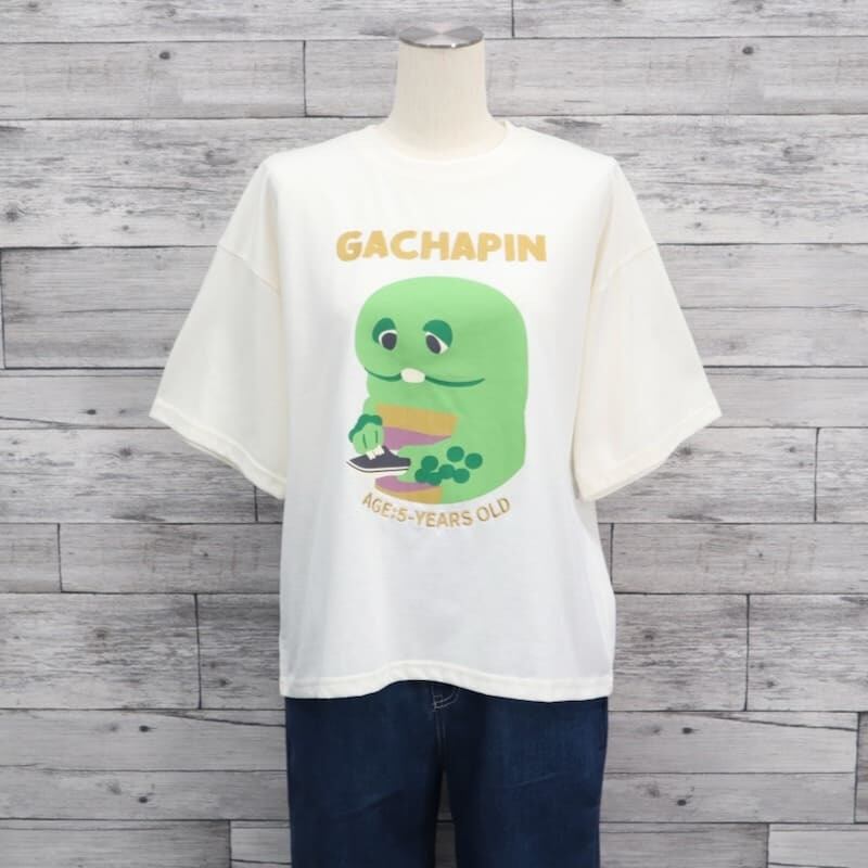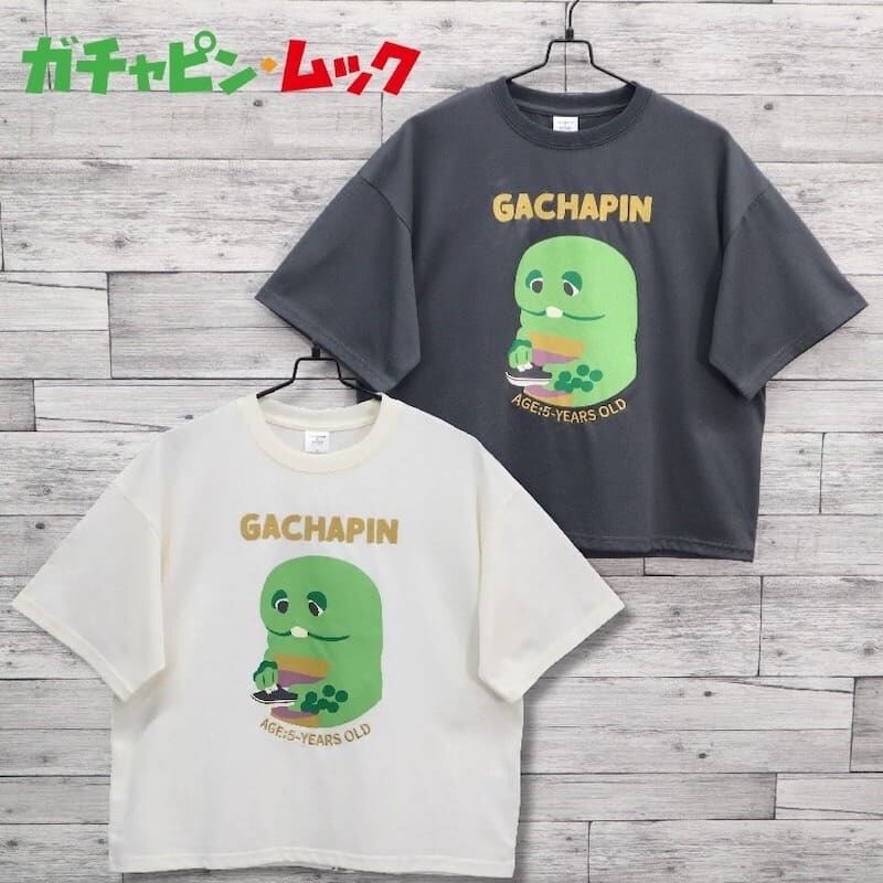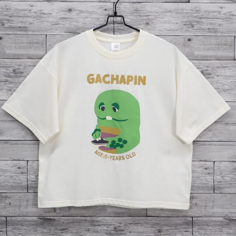 テレビ番組やYouTubeで大活躍の「ガチャピン・ムック」のガチャピンをデザインした半袖Tシャツ。