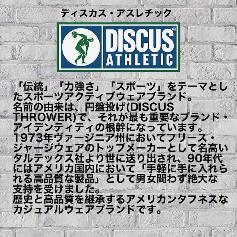 人気アメカジブランド「DISCUS ATHLETIC」のカレッジロゴTシャツ。