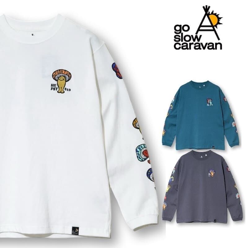 【送料無料】ゴースローキャラバン go slow caravan 長袖 Tシャツ ティーシャツ 長袖Tシャツ ロンT トップス Hi!PSY!キノコ キノコ きのこ 茸 キャラクター 綿 コットン ユニセックス メンズ レディース 白 ホワイト ブルーグリーン チャコール | DEF STORE