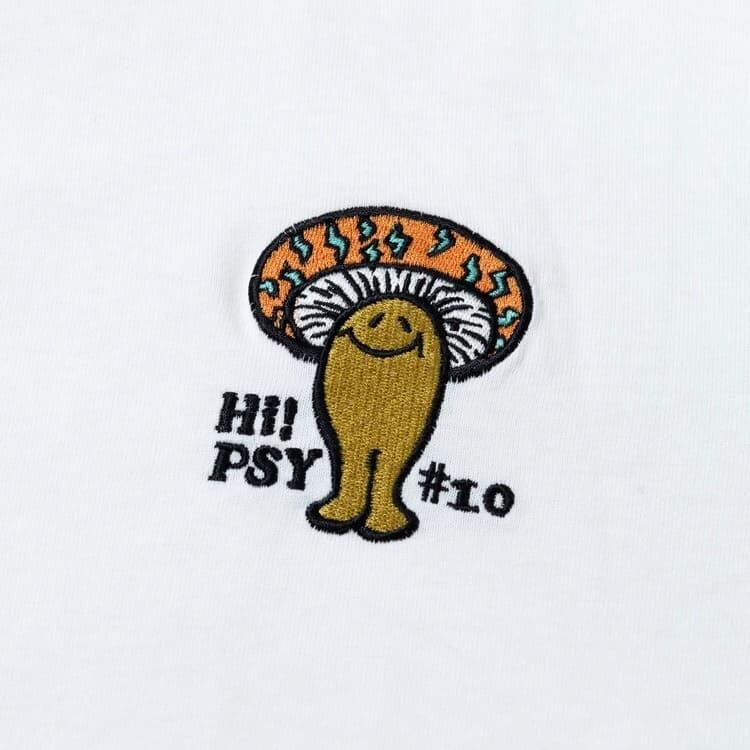 袖にカラフルなサイケキノコ達Hi!Psy!キノコが並び、胸にはボディカラー毎に異なったキノコを刺繍。