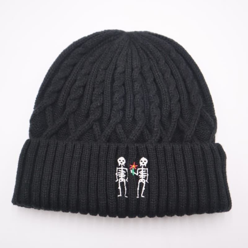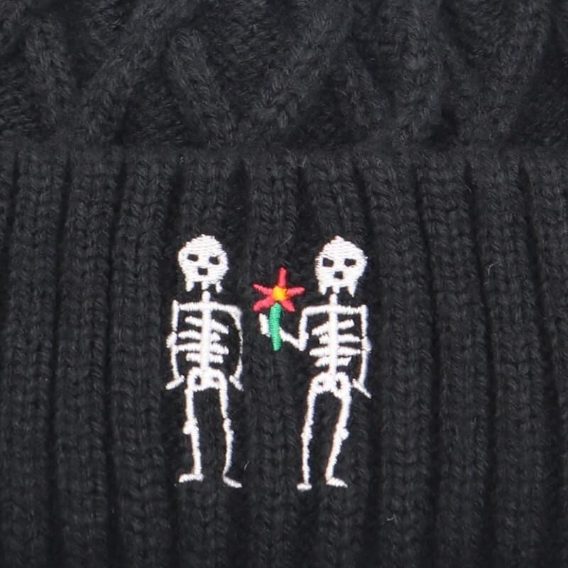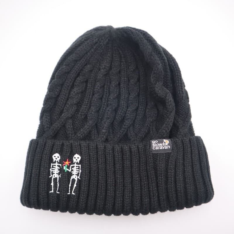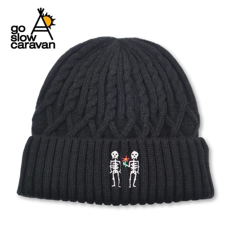 ゴースローキャラバン go slow caravan ニット帽 ビーニー ニットキャップ 帽子 CAP キャップ 刺繍 ほねほね 骨 スカル ドクロ どくろ レディース メンズ ユニセックス フリーサイズ 黒 ブラック