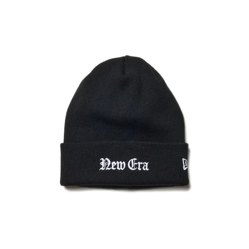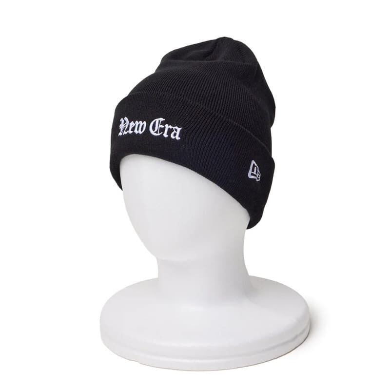 オールドイングリッシュフォントで「New Era」の刺繍を入れたニット帽。
