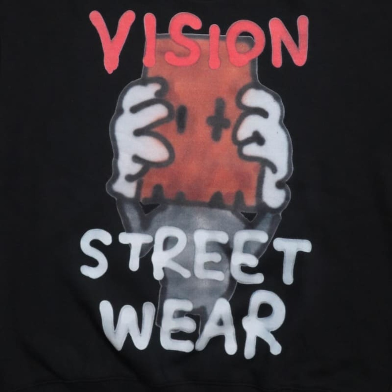 【送料無料】メンズ vision street wear ヴィジョンストリートウェア guernika ゲルニカ コラボ トレーナー スウェット プルオーバー 長袖 アノニマウス キャラクター イラスト プリント オーバーサイズ 裏起毛 ユニセックス レディース ライトグレー 黒 ブラック | DEF STORE