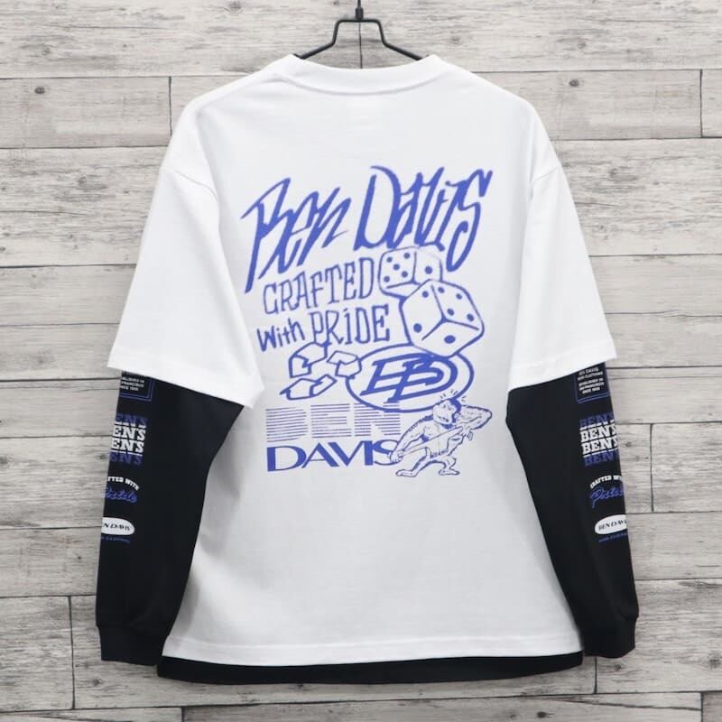 【送料無料】メンズ ベンデイビス BEN DAVIS BENDAVIS 長袖 半袖 Tシャツ 長袖Tシャツ 半袖Tシャツ ティーシャツ ロンT レイヤード 重ね着 2枚セット 3WAY バックプリント 袖プリント ユニセックス レディース 白 ホワイト ブルー 黒 ブラック | DEF STORE