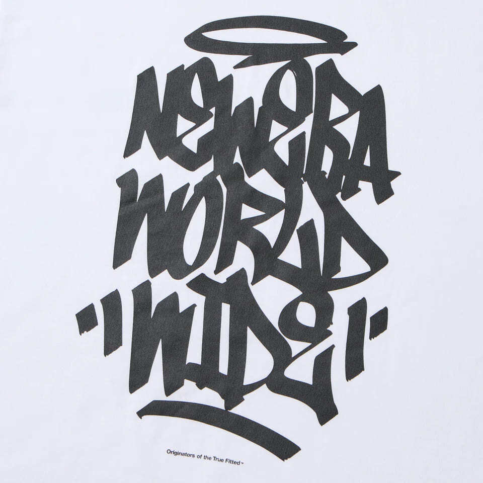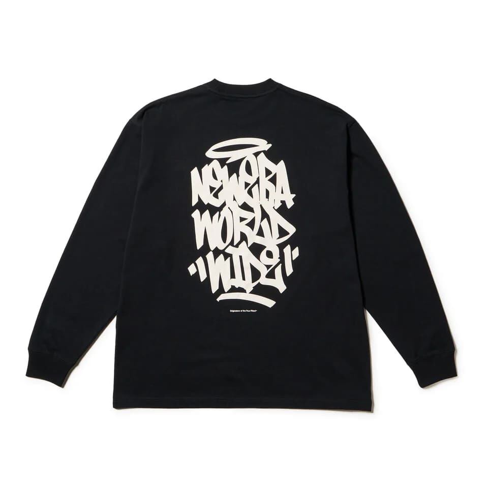 ニューエラに関連するワードをタギング風デザインで表現した長袖Tシャツ。