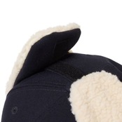 イヤーフラップの内側に毛足の短いボアフリースを配したドッグイヤーキャップ。