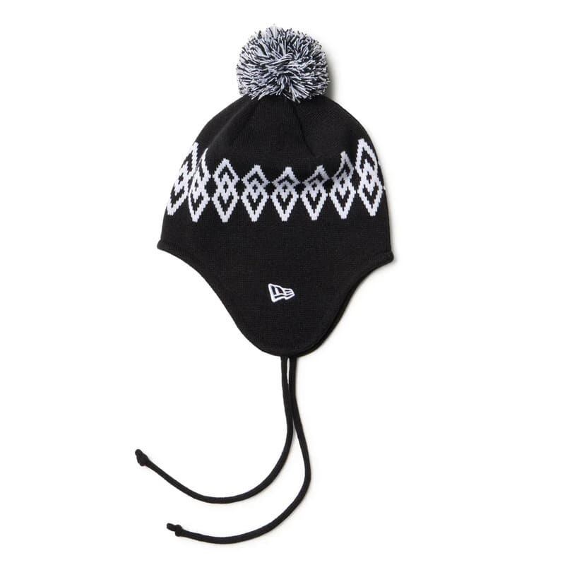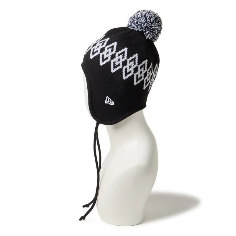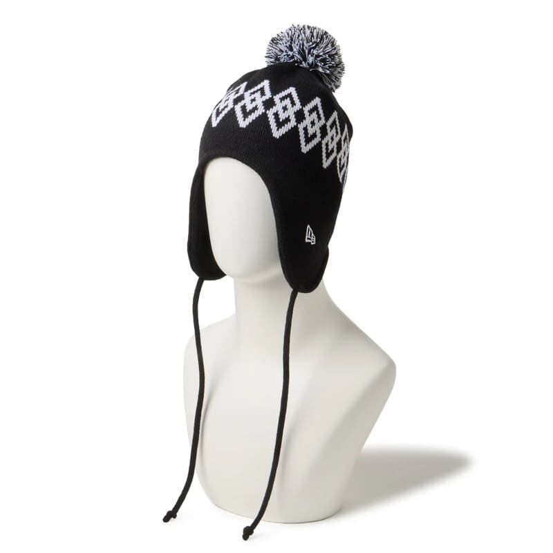 NEWERA ニューエラ 正規品 ニット帽 ポンポン イヤーフラップ ニットキャップ ビーニー 帽子 CAP キャップ 耳当て 刺繍 柄 レディース メンズ ユニセックス フリーサイズ インディゴ ブルー 黒 ブラック 14670001 14670002 | DEF STORE