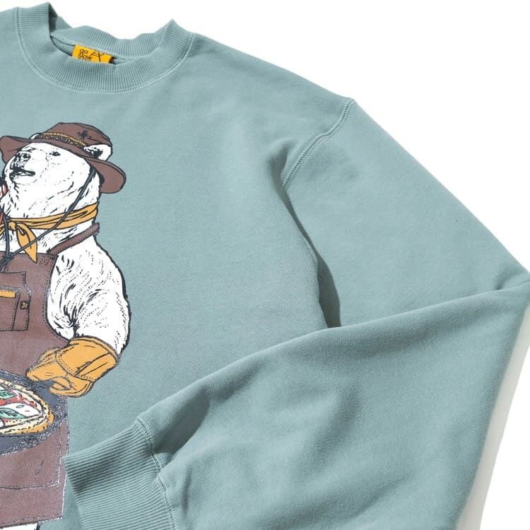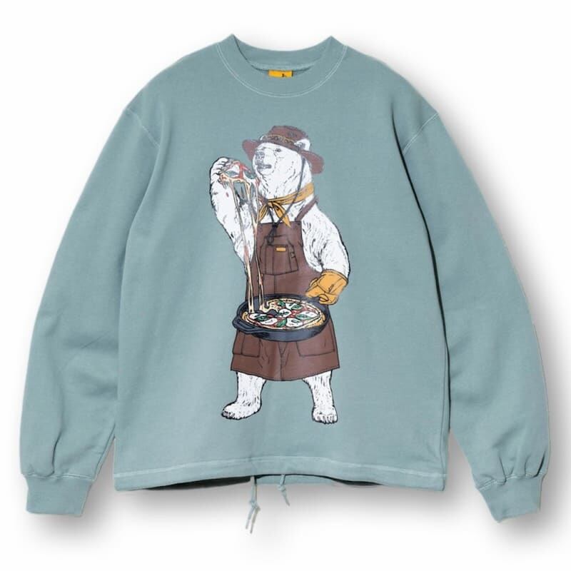 【送料無料】ゴースローキャラバン goslowcaravan go slow caravan 長袖 裏毛 空紡糸裏毛 スウェット トレーナー プルオーバー ピザ クマ 熊 くま キャンパークマ キャンプクマ ユニセックス メンズ レディース アイボリー グリーン ミント | DEF STORE