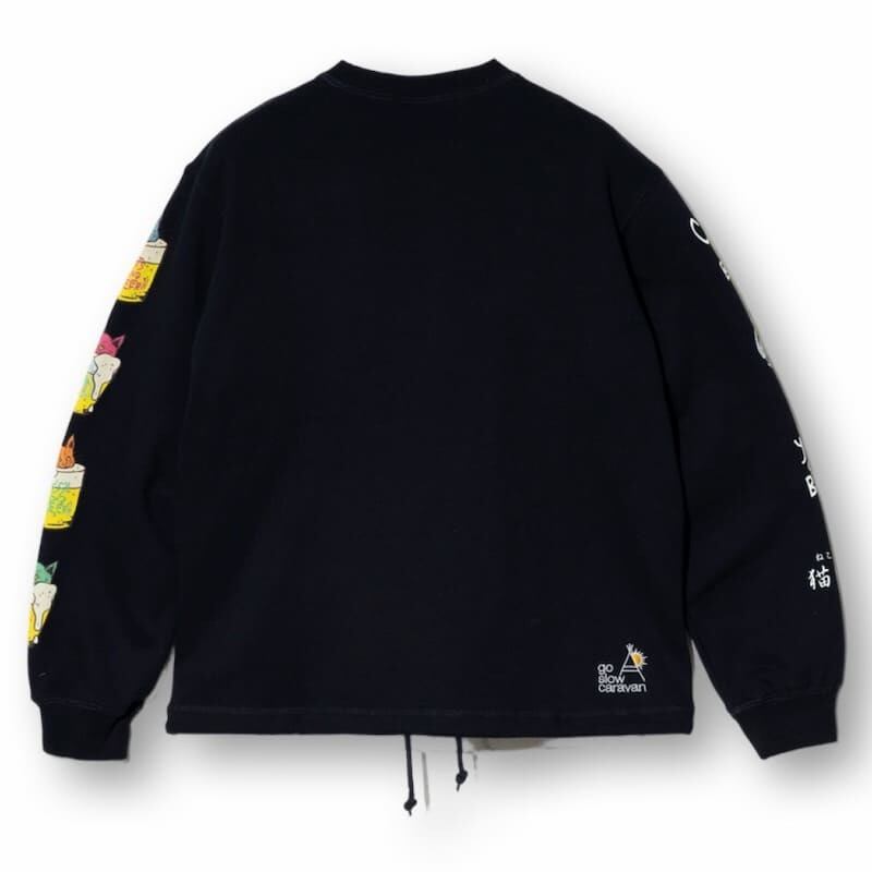 【送料無料】ゴースローキャラバン goslowcaravan go slow caravan 長袖 裏毛 空紡糸裏毛 スウェット トレーナー プルオーバー 猫と麦酒 猫とビール 猫 ねこ ネコ ビール ユニセックス メンズ レディース アイボリー 黒 ブラック | DEF STORE