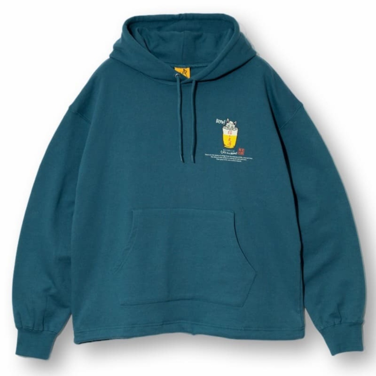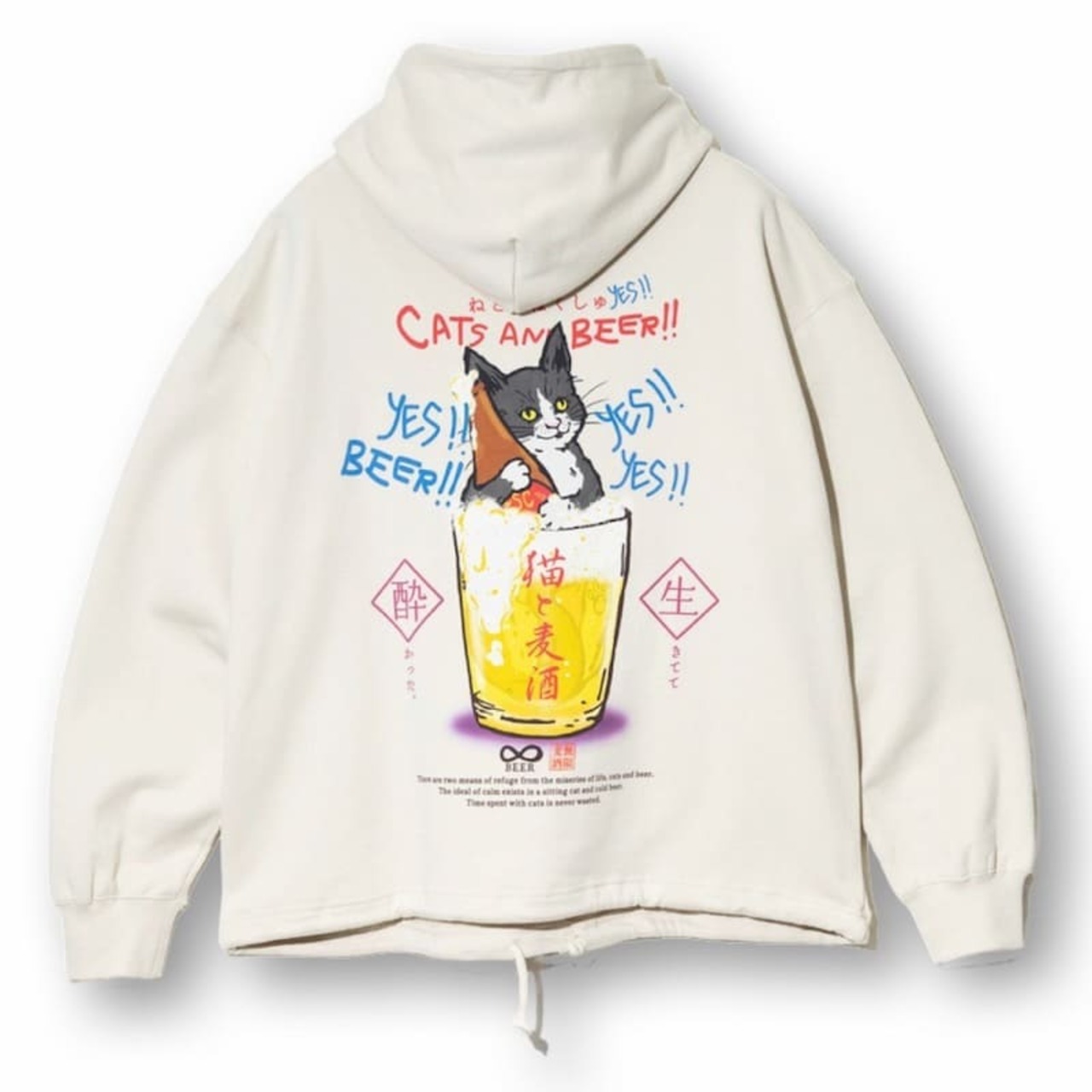 go slow caravanオリジナルで編み立てている《空紡糸裏毛シリーズ》から、人気の「猫と麦酒」フーディーが登場。