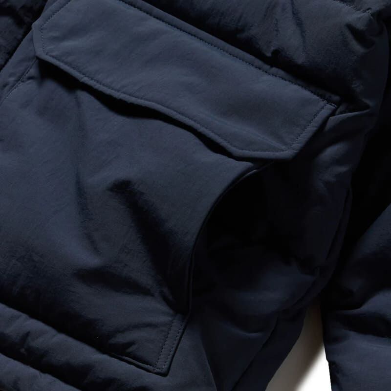 柔らかな風合いが特徴のワッシャーナイロンを採用したダウンジャケット。