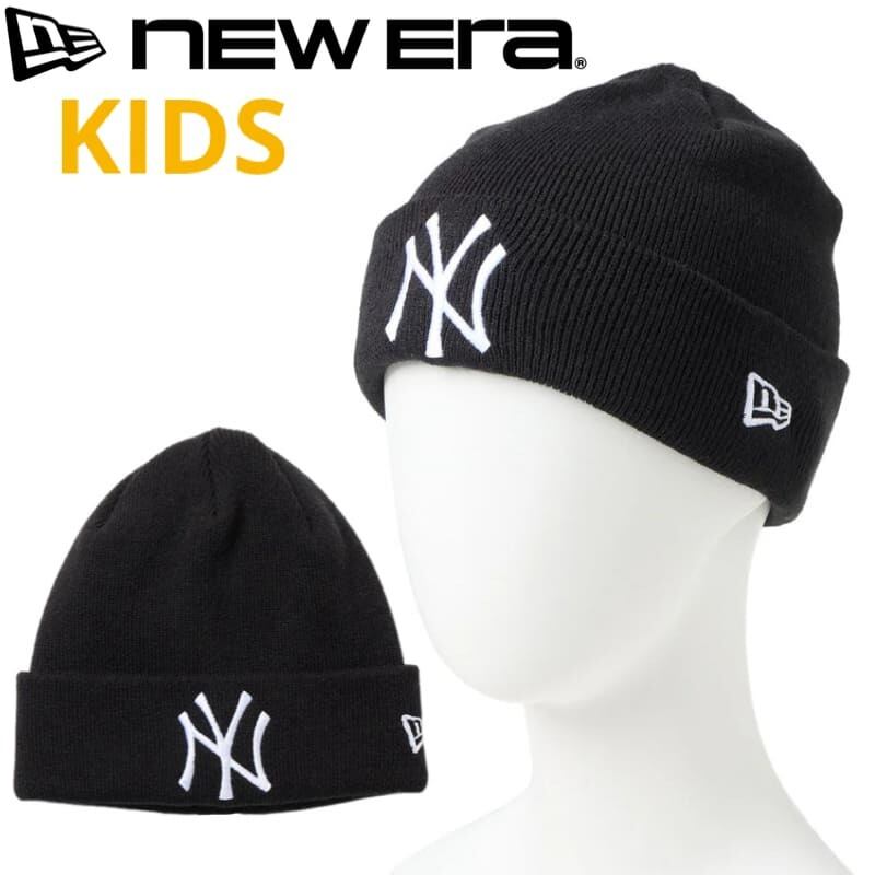 NEWERA ニューエラ 正規品 キッズ ユース NY ニューヨーク ヤンキース ニット帽 ニットキャップ CAP 帽子 野球 ロゴ 刺繍 子供用 男の子 女の子 ユニセックス 黒 ブラック 14671687