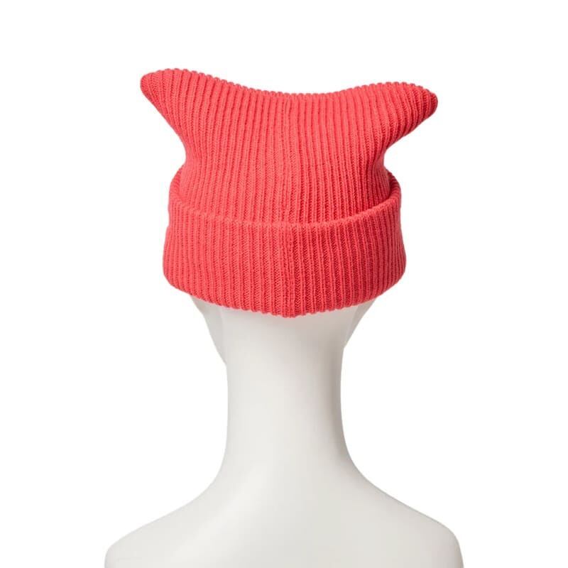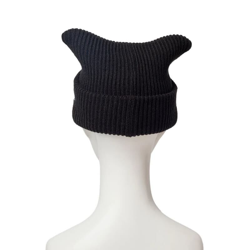 着用時、猫耳のように見えるスクエアニットキャップ。