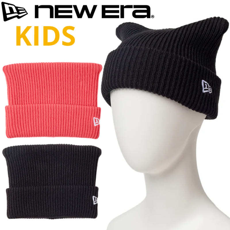 NEWERA ニューエラ 正規品 キッズ スクエア ニット帽 猫耳 ネコ耳 ねこ耳 ビーニー カフニット ニットキャップ 帽子 CAP キャップ 子供用 男の子 女の子 ユニセックス コーラル ピンク 黒 ブラック 14671670 14671671