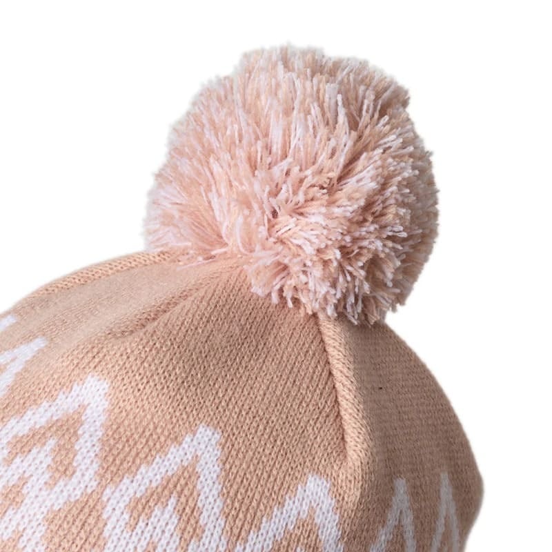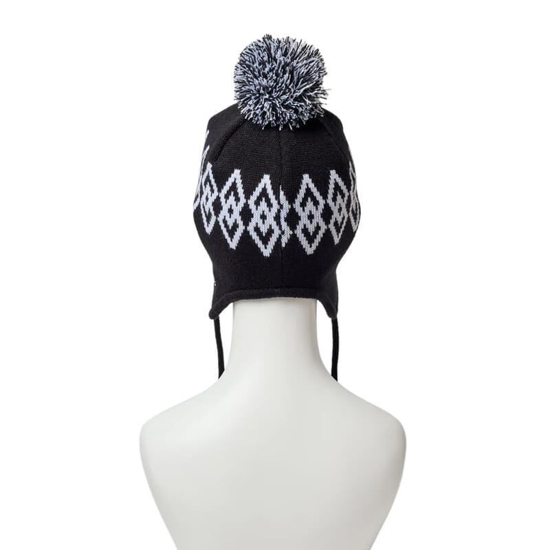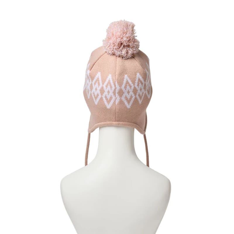 イヤーフラップを配したポンポンニットキャップ。