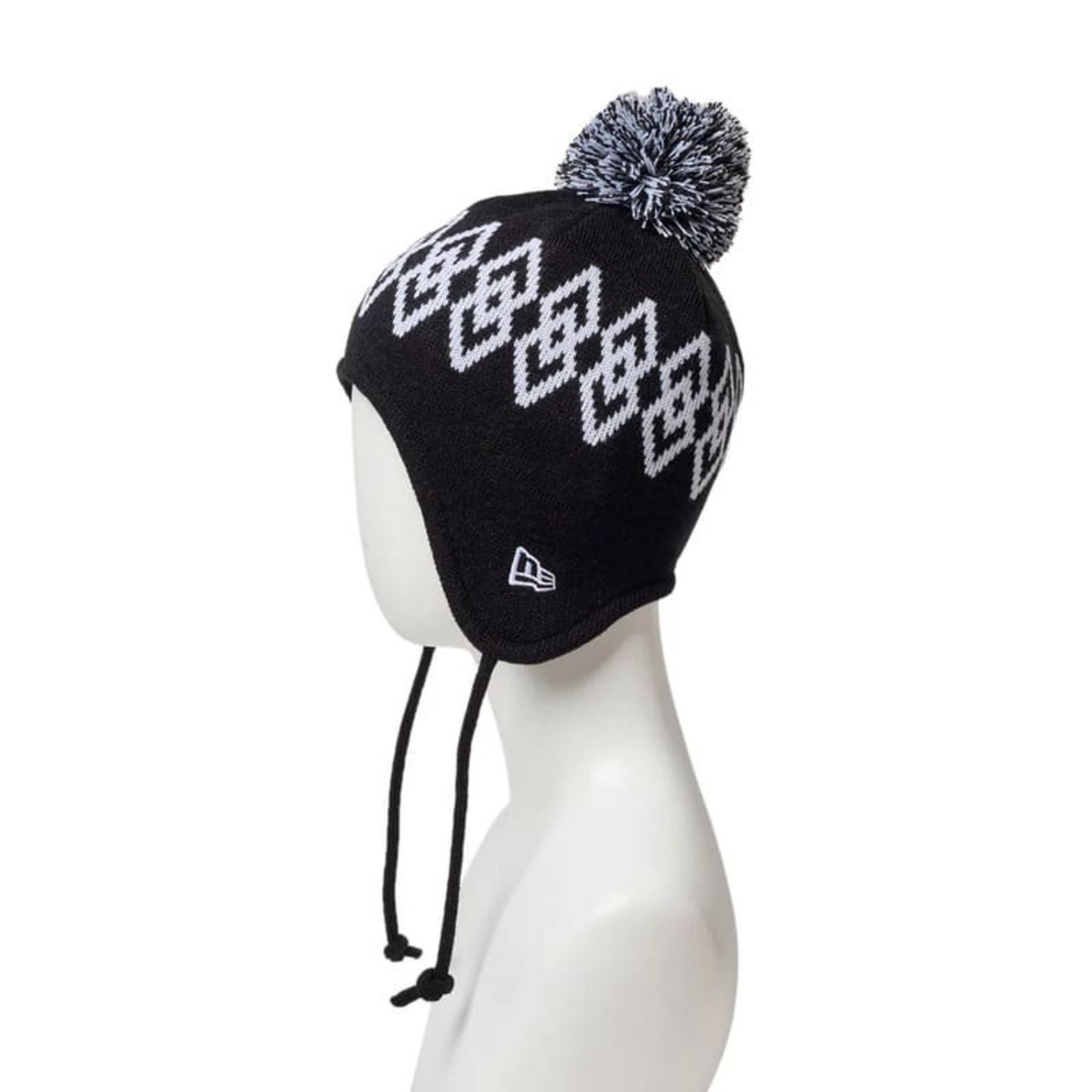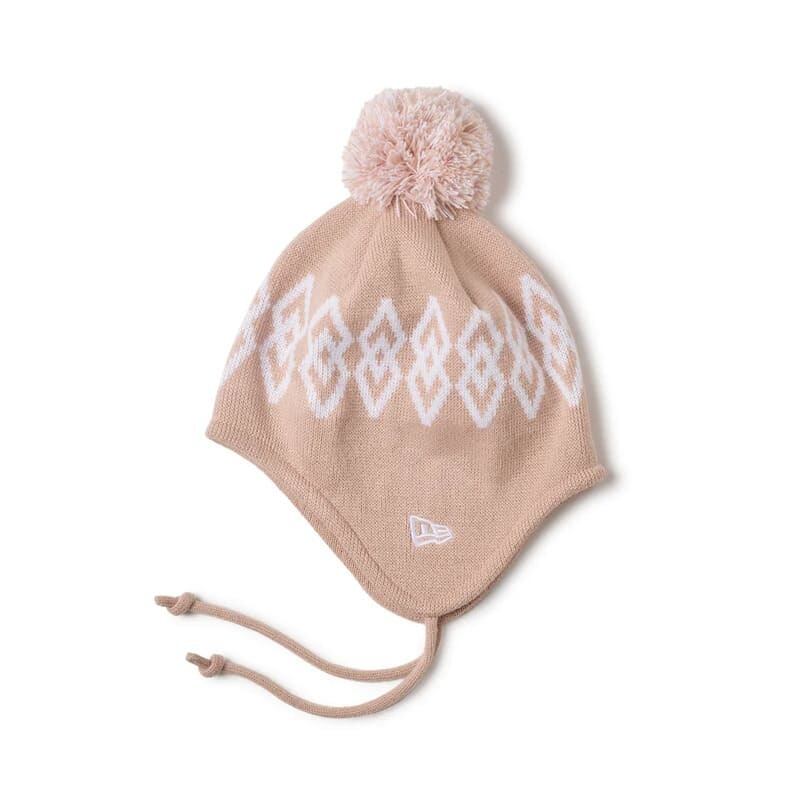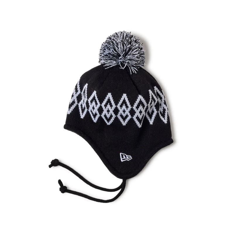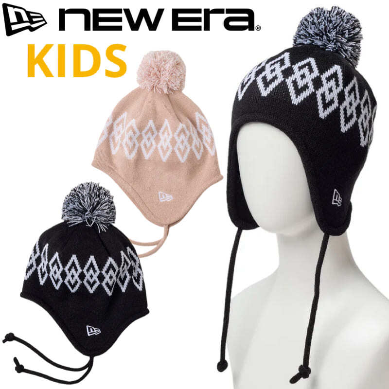 NEWERA ニューエラ 正規品 キッズ ポンポン ニット帽 ニットキャップ イヤーフラップ 耳当て 帽子 CAP キャップ 柄 子供用 男の子 女の子 ユニセックス ピンク 黒 ブラック 14671677 14671678
