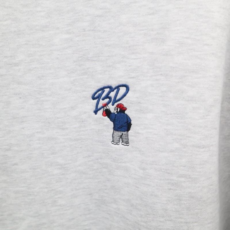 左胸にスプレーアートをするゴリラの刺繍が入ります。裾のピスネームもポイント。