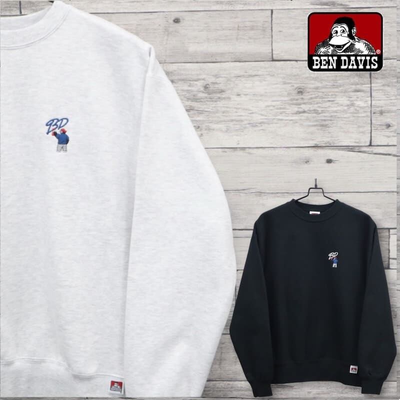 【送料無料】メンズ ベンデイビス BEN DAVIS BENDAVIS 長袖 スウェット トレーナー 裏起毛 ワンポイント 刺繍 ゴリラ キャラ オーバーサイズ ゆったり ユニセックス レディース グレー 黒 ブラック | DEF STORE