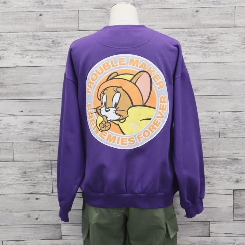 【送料無料】トムとジェリー TOM&JERRY スウェット トレーナー 裏起毛 バックプリント サークル トムジェリ キャラクター グッズ シークエンズ コラボ ユニセックス メンズ レディース アッシュグレー パープル 24770905 ジェリー