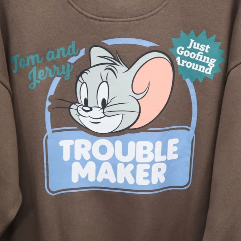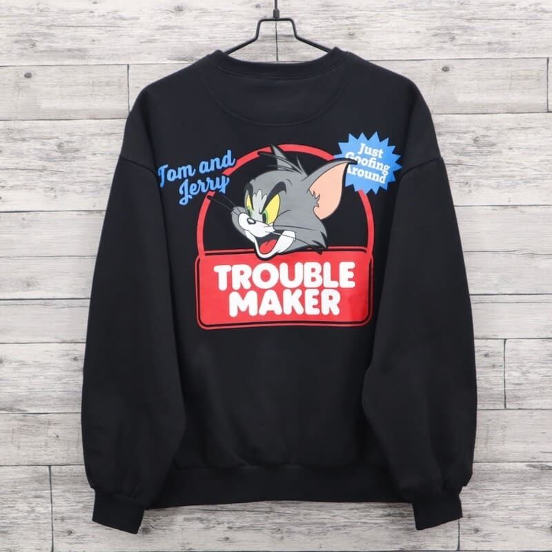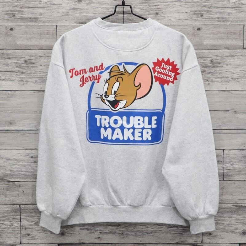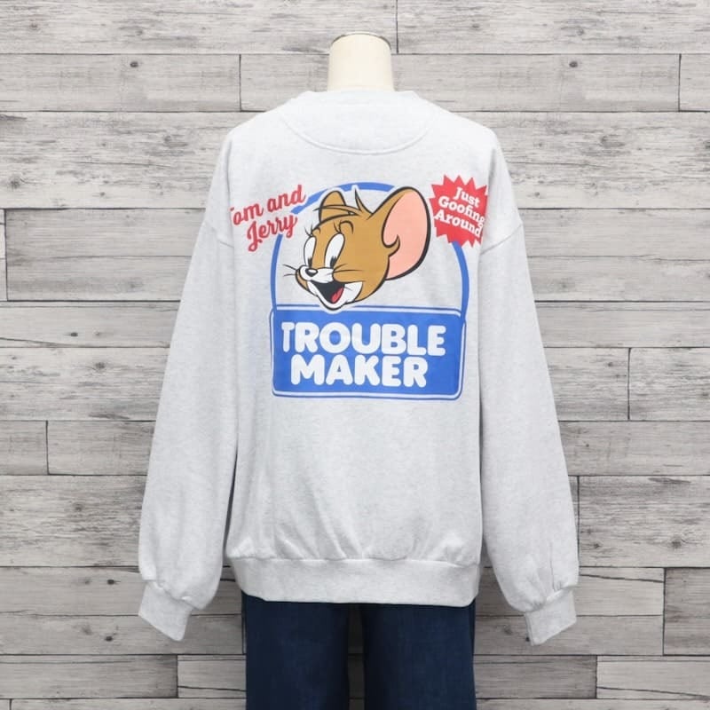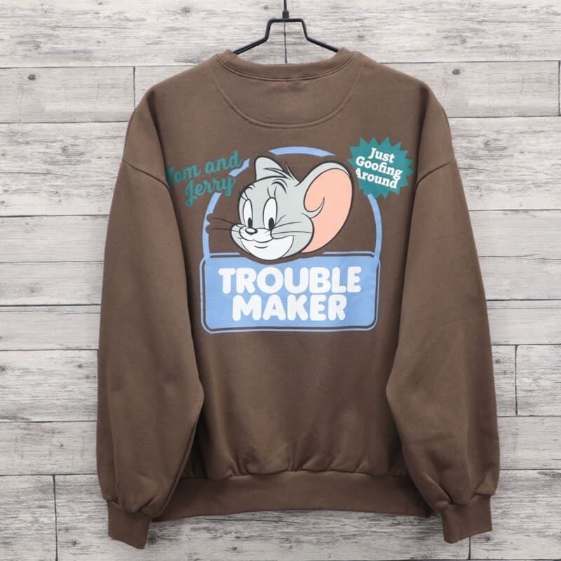 【送料無料】トムとジェリー TOM&JERRY スウェット トレーナー 裏起毛 バックプリント トラブルメーカー トムジェリ タフィー キャラクター グッズ シークエンズ コラボ ユニセックス メンズ レディース グレー ブラウン ブラック 24770906 | DEF STORE
